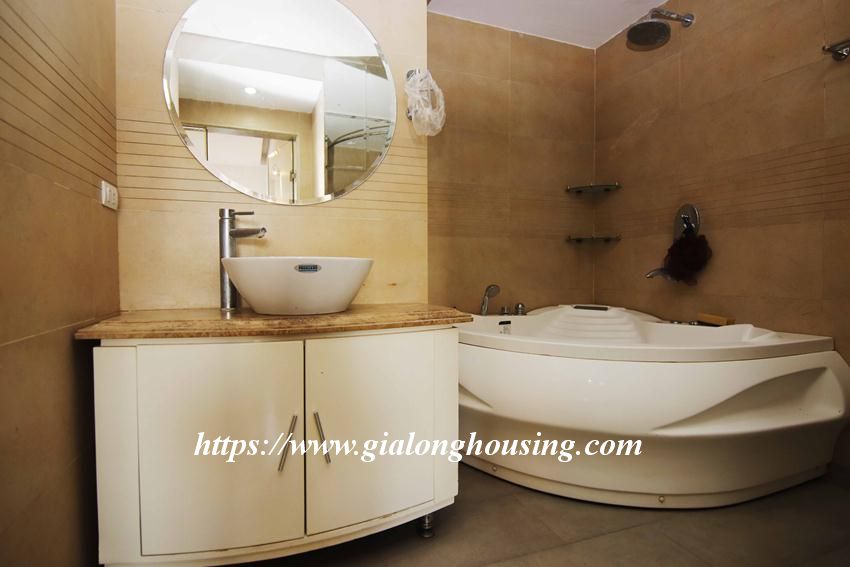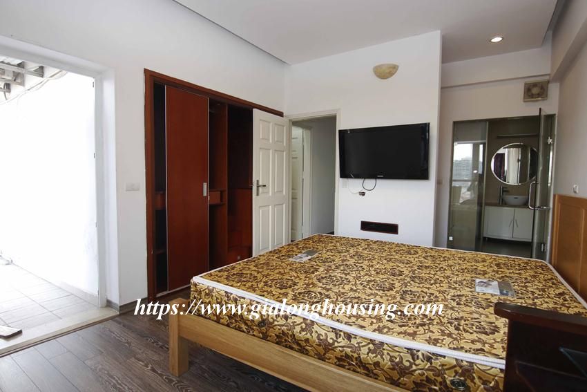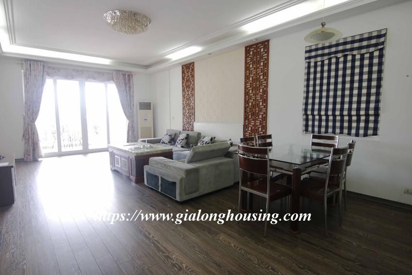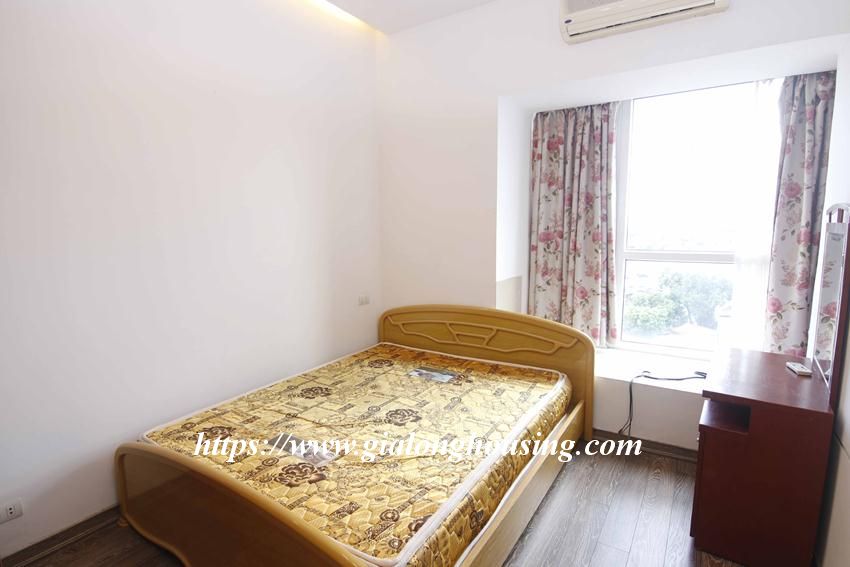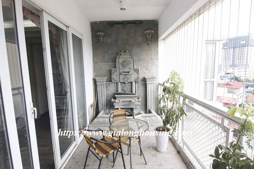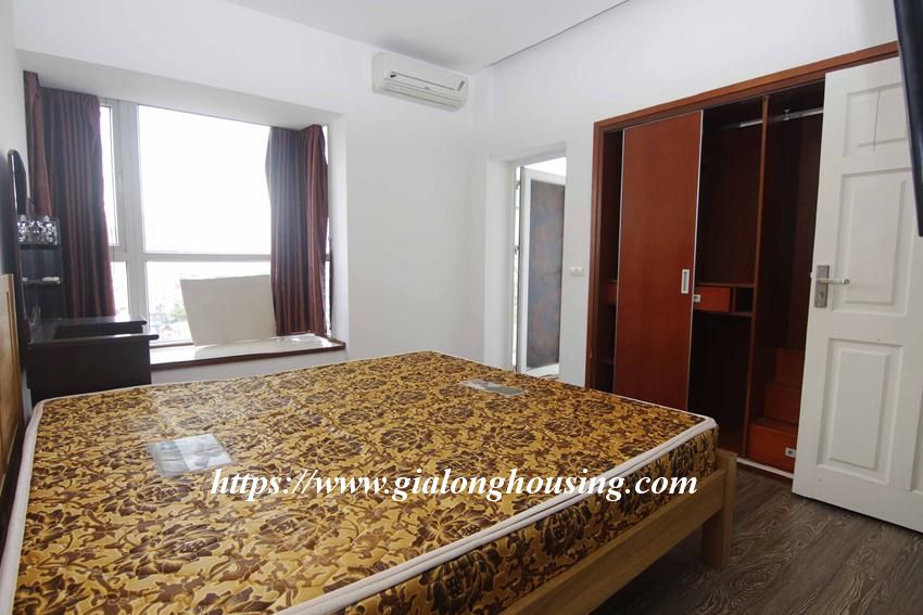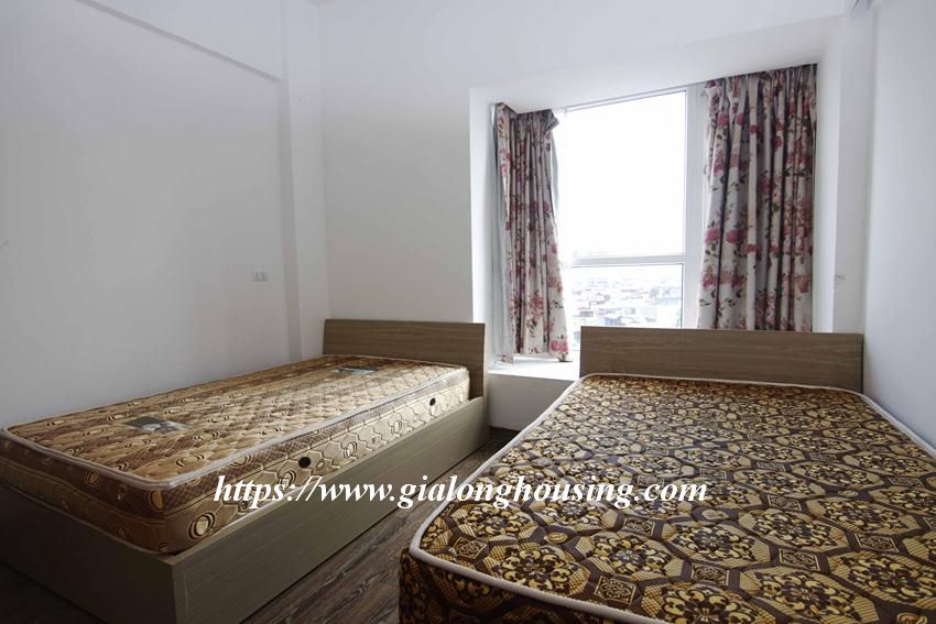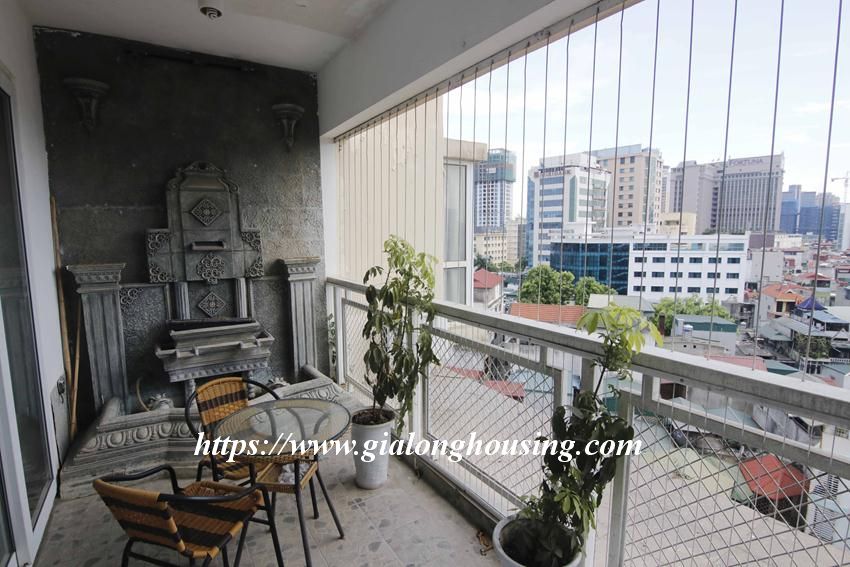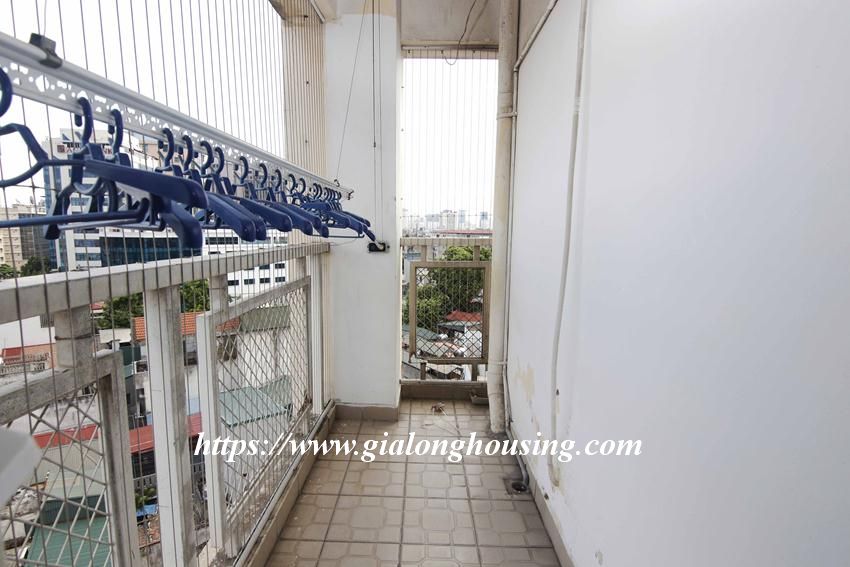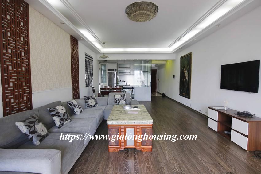 This huge apartment is located in high floor of Artex building, 172 Ngoc Khanh street, not far from Giang Vo, Kim Ma and Nui Truc. The size of the apartment is up to 200 sq m, 03 bedrooms and 02 bathrooms with 2 big balconies. The apartment is furnished with basic furniture. The building has security 24/24.