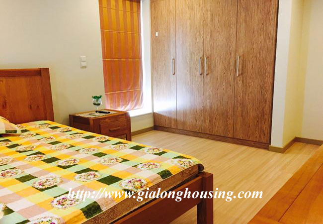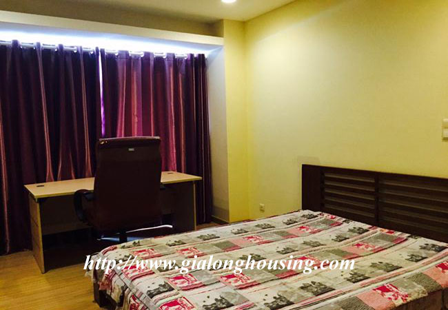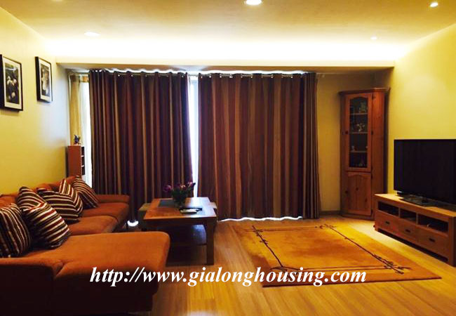 The total area of this big apartment is up to 180 sq m. There are 03 bedrooms and 03 bathrooms, suitable for all you to stay in long time. The apartment is fully furnished with high quality furniture, ready for the tenants to move in. The apartment is on the high floor so you can enjoy the fresh air and natural light. The building has fitness center, security, mini marts, cafes and playground for kids.