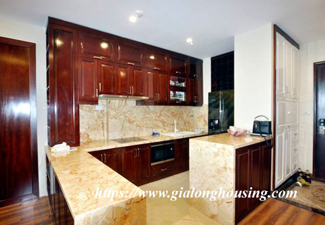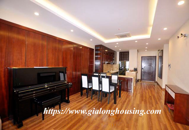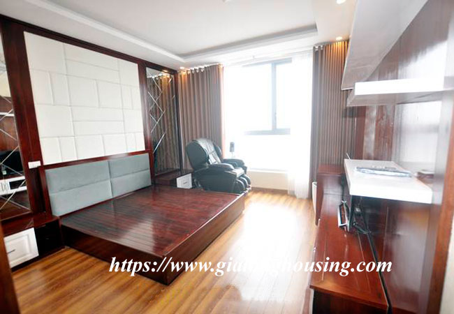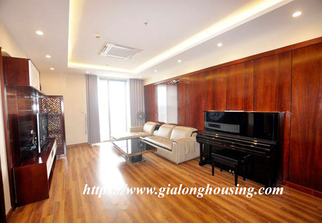 This is a big apartment located in Vinhomes Nguyen Chi Thanh building. The total area is 130 sq m, including 03 bedrooms and 02 bathrooms. The whole apartment is bright and nice with modern and nice furniture and equipment. The building has: swimming pool, supermarket, coffee shops etc.