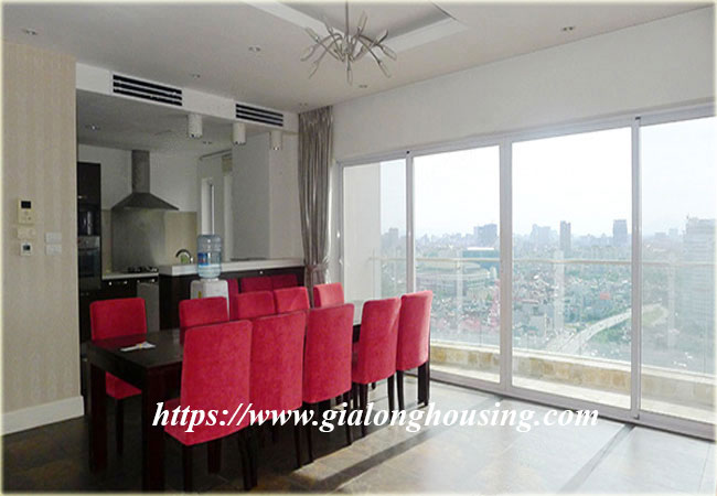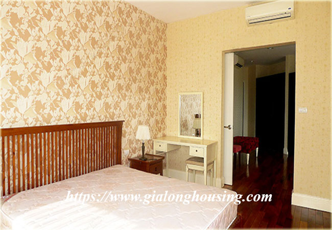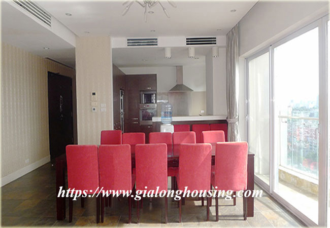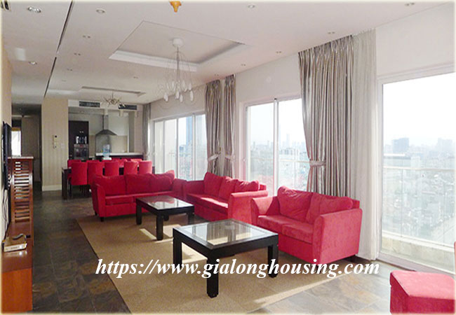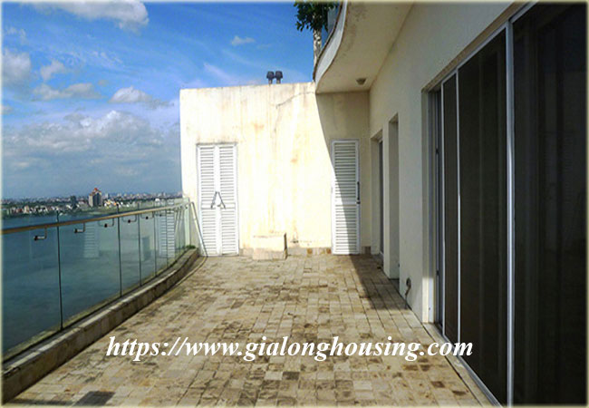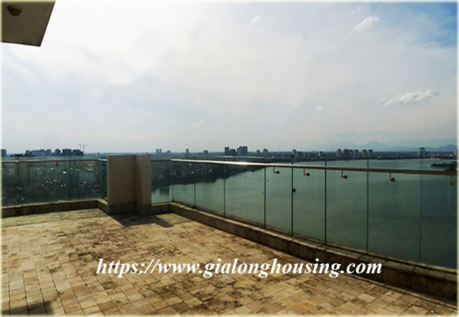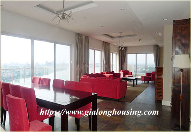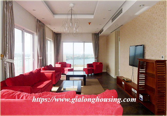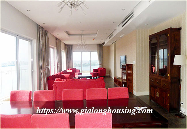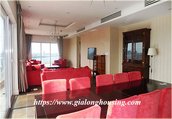 The total area of this apartment is 281 sq m, including 04 bedrooms and 04 bathroom. The living room and the kitchen is combined with a large dining area. The whole apartment is bright with natural light from balconies and windows. From the balcony, you can see the panoramic view of West lake. The apartment is fully furnished so the tenants can move in immediately. The buildings have swimming pool, security, car parking and gym.