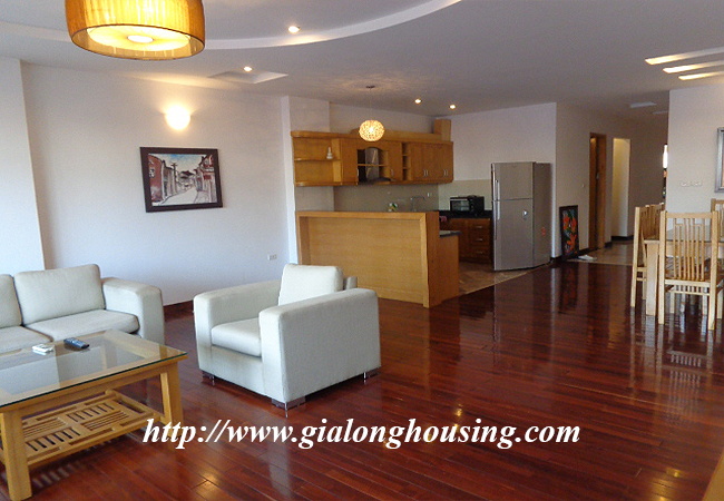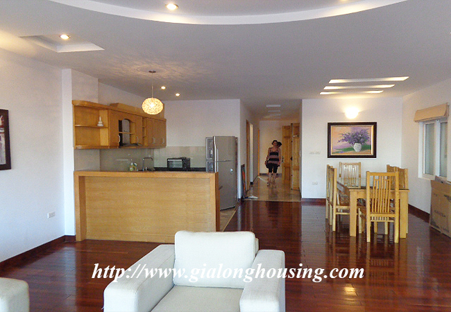This apartment is located in Lac Chinh street, Truc Bach area. The peninsula is nice and beautiful, walking distance to Truc Bach lake. There are a lot of restaurants, shopping centers and cafes. The size of the apartment is big, 150 sq m for living space. There are 02 bedrooms and 02 bathrooms, 01 large balcony where you can smoke, see the city or sunbathe.