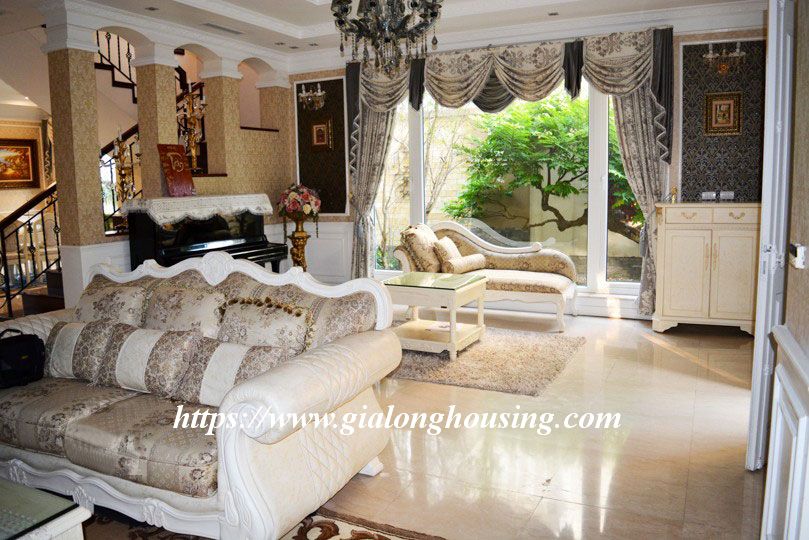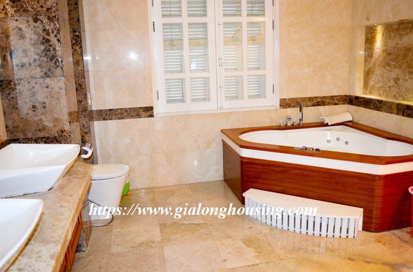 This big garden villa is located in Ciputra urban area. The total land area is 350 sq m with a big garden and lot of trees. The villa is fully furnished with high quality furniture, suitable for long term contract. There are 5 bedrooms and 4 bathrooms, spacious and bright due to the big windows and nice balconies.