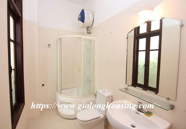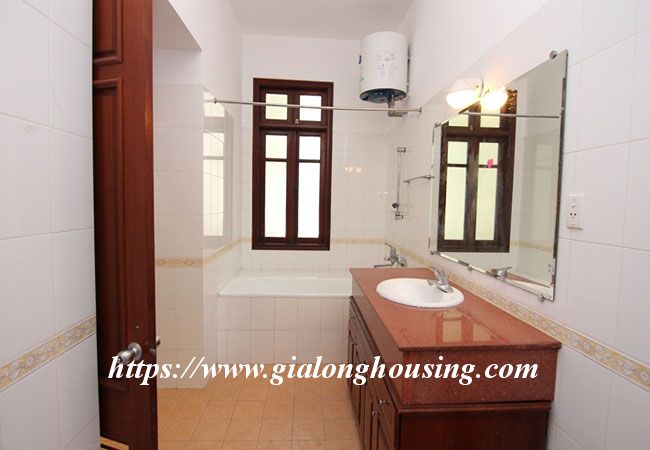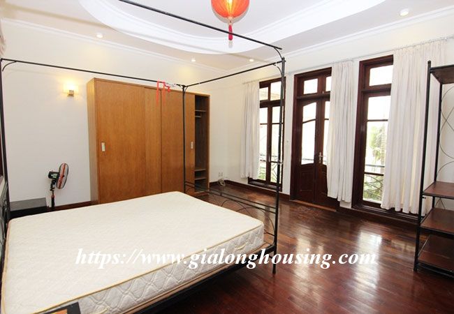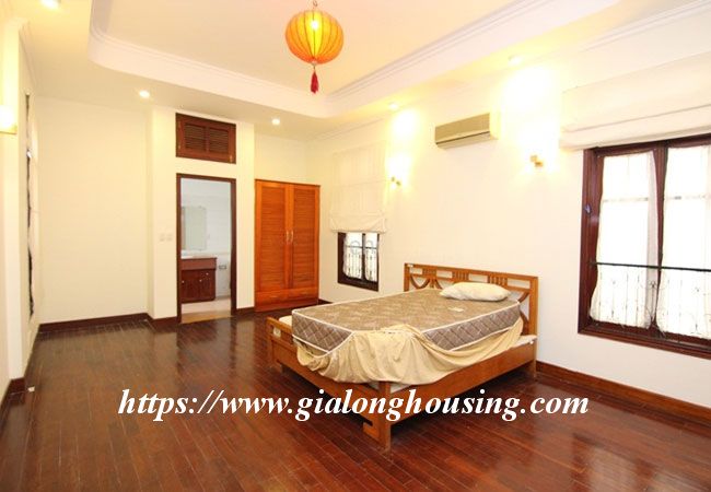 The spacious house is located in the peaceful lane of Dang Thai Mai street, Tay Ho district, Hanoi. The land area is 200 sq m, there is a big yard for motorbike parking or playground for kids. The house has 06 bedrooms and 06 bathrooms, suitable for a group of friends sharing the house or a family. It is fully furnished and the tenants can move in immediately.