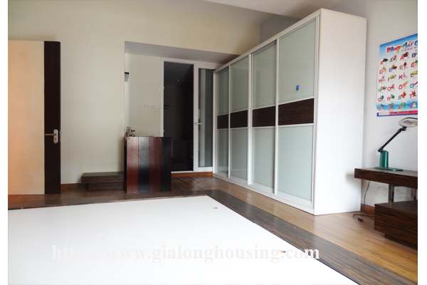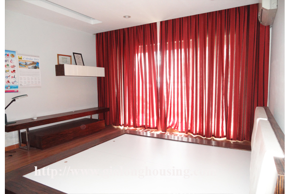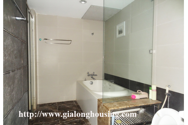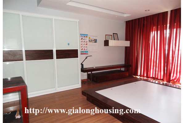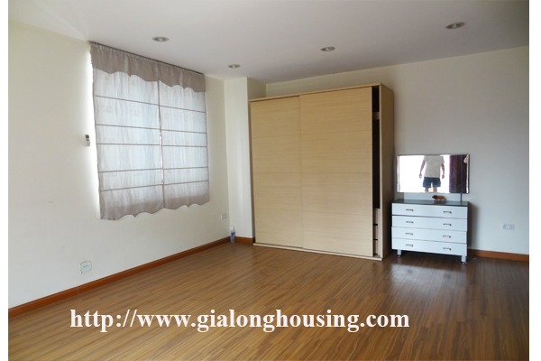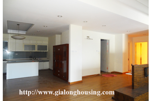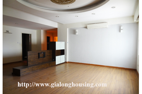 A spacious apartment for rent in Nguyen Phong Sac street Cau Giay district. This apartment has 182 sqm in use, good city view. The apartment is compound of 1 wooden floor big-sized living room and 3 bedrooms, 3 bathrooms, a separated kitchen. All rooms has windows, bring natural light to the apartment.