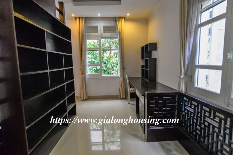 This villa is located in C block , Ciputra urban area - the biggest urban area is Hanoi with high quality services : security 24/24, international schools, golf court, parks. The land area of this villa is 180 sq m, 03 floors. There are 03 bedrooms and 04 bathrooms, suitable for long term contract. The villa is furnished and ready for the tenants to move in.