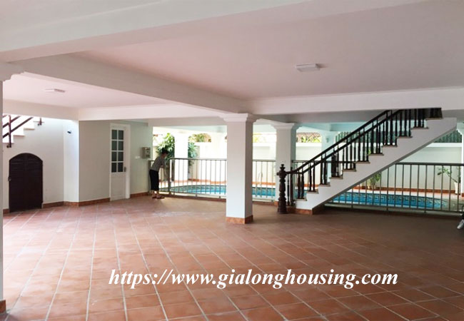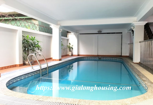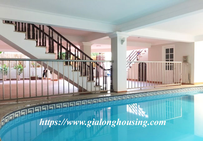 This big villa is located in Dang Thai Mai street, Tay Ho district. The land area is up to 250 sq m. It has a big yard, a green garden and an indoor swimming pool on the ground floor. There are 04 bedrooms and 04 bathrooms, suitable for a family or a group of friend to stay in long term. All rooms are bright and have a lot of natural light. You can set up your own furniture and equipment.