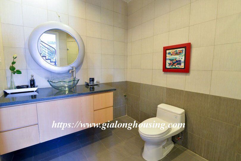The villa is located in one of the most modern and serenade urban area in Hanoi - Ciputra International. The land area is 300 sq m, with a nice garden and lot of green. There are a big living room where you can enjoy the home feelings or invite friends and family to drop by. The villa has 5 bedrooms and 4 bathrooms, big enough for a family with kids.