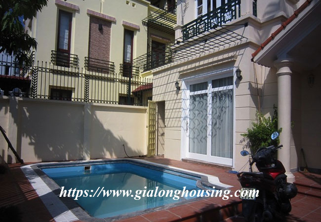 The big villa is available for rent at the moment. There is a small pool in the courtyard that can be the ideal place for your kids to swim. The land area is 165 sq m. The construction area is 90 sq m x 4 floors. The whole rooms are bright and nice due to unique design with a lot of natural light and cool wind. There are 5 bedrooms and 5 bathrooms, enough space for a big family or a group of friends.
