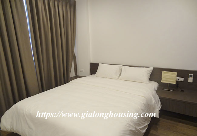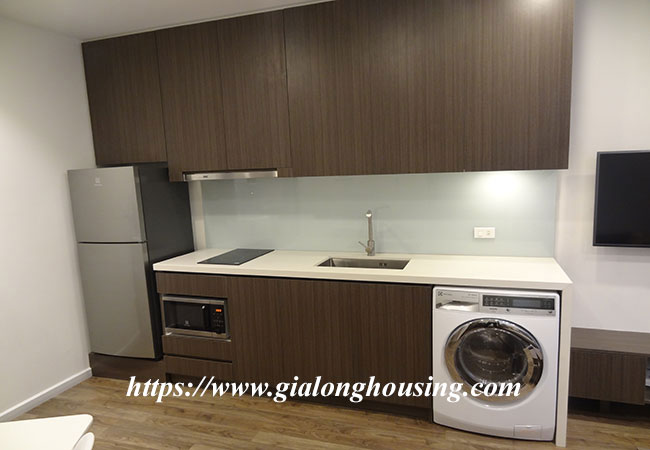 This one bedroom serviced apartment is located in lane of To Ngoc Van street, Tay Ho district. The alley is quiet and beautiful so that the tenants can enjoy the quietness. The total area is 40 sq m, including 01 bedroom and 01 bathroom. The living room and the kitchen is combined. All furniture and equipment are new and modern, suitable for using in long term. The price includes cable TV, wireless internet and tap water.