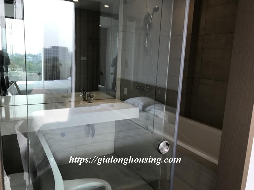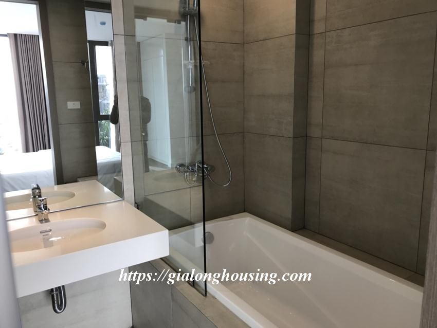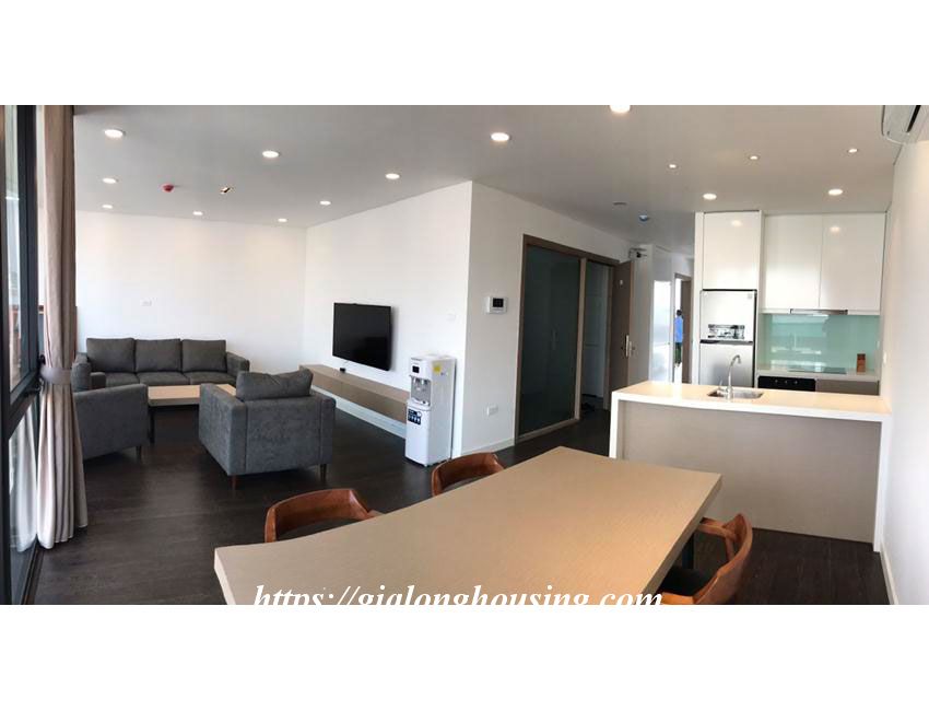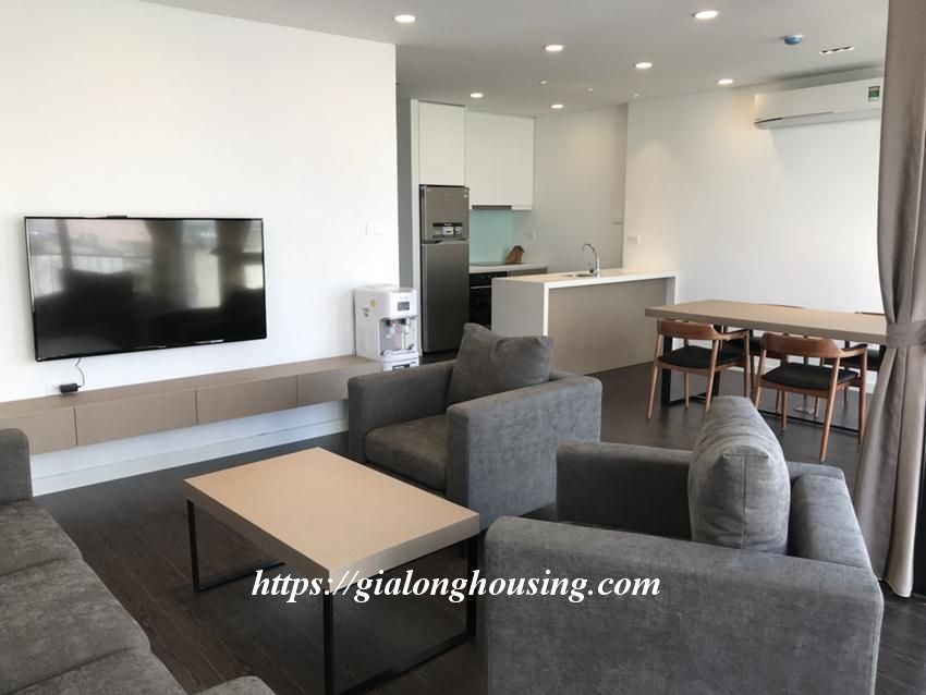 This brand new apartment is fully of furniture and modern equipment : oven, two way air conditioners, nice sofa and washing and dryer machine. The size of the apartment is up to 100 sq m, 02 bedrooms and 02 bathrooms. The rent includes: cable TV, wireless internet, tap water and cleaning service.