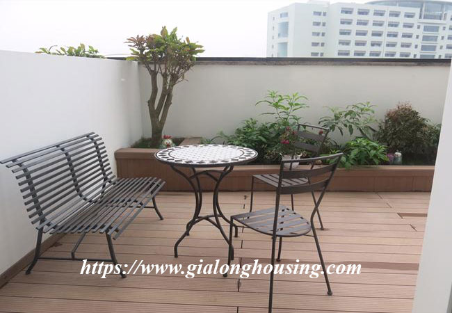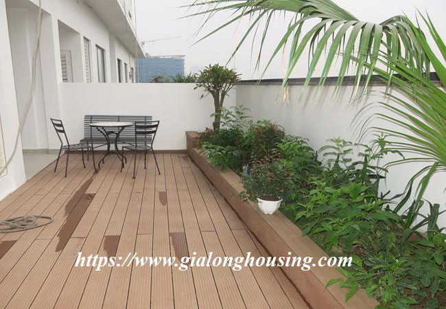 This apartment is on the high floor with wide living space, airy, city view, balcony and fully furnishing, full facilities. This apartment has wooden floor, a modern kitchen, wifi internet, tv cable. The most attraction point is an open balocny with extraordinary view. You can relax in fresh air and cool wind, read book or even plant some flowers there. It has 2 bedroom, walk-in bathrooms, modern furniture, all are comfortable for tenants to stay in long time.