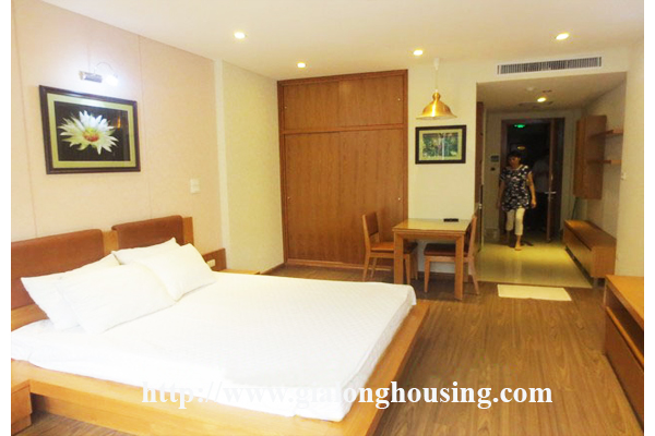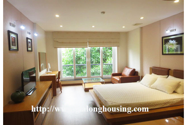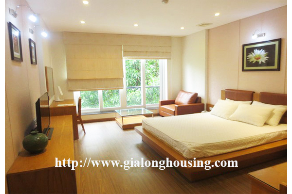 Brand new serviced apartment for rent in Linh Lang street Ba Dinh dist. This apartment is located nearby Japanese embassy and Australian embassy, newly furnished, modern designed. This is a studio serviced apartment with living size is 50 sq.M, wooden floor, a balcony, lift, security camera, receptionist. It has a modern bathroom for Japanese