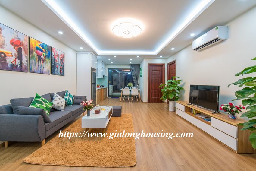 This brand new apartment is located in high floor of Central Field 219 Trung Kinh. The total area is 76 sq m, 02 bedrooms and 02 bathrooms. The apartment is fully furnished with high quality furniture. The apartment is ready for the tenants to move in. The building has swimming pool, security 24/24, car parking area.