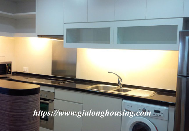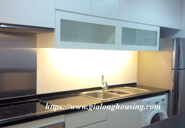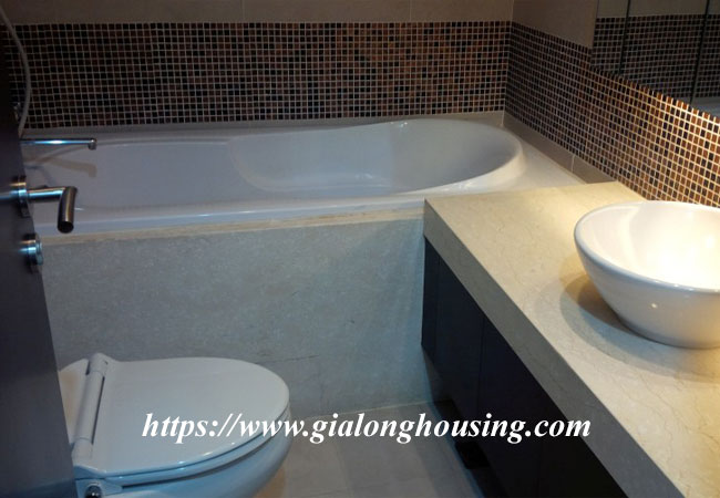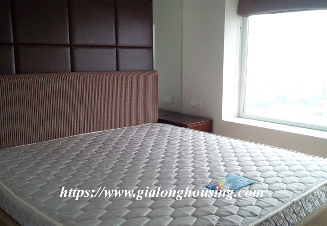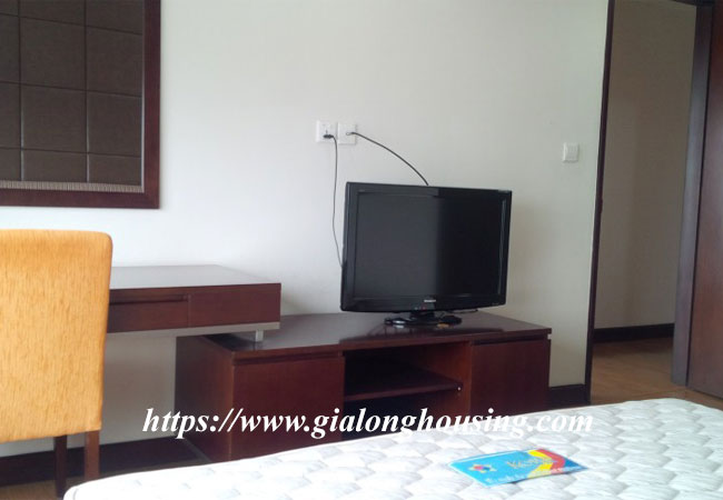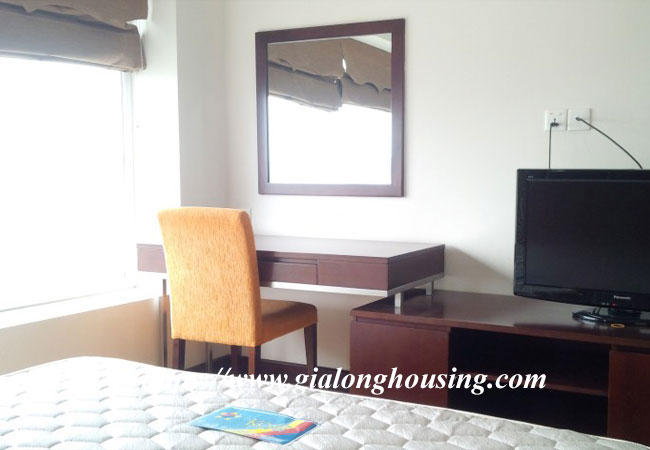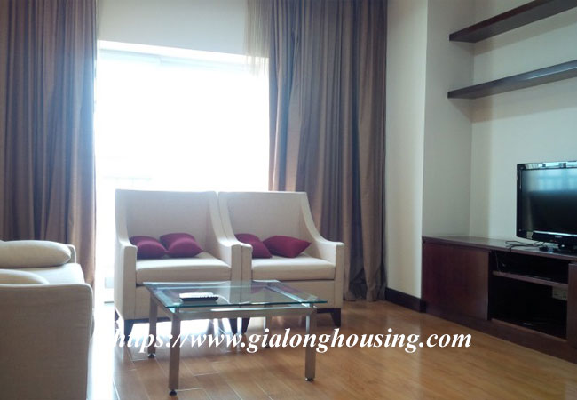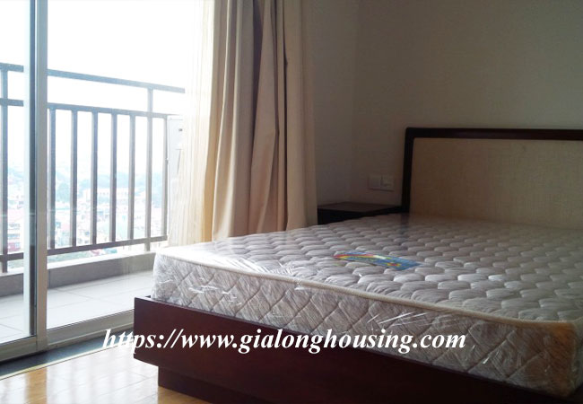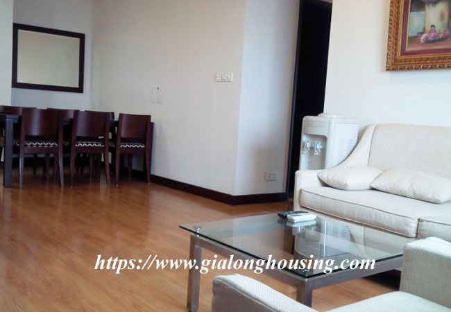 This 3 bedroom apartment is located in high floor of Hoa Binh Green 376 Buoi, not far from Daewoo and Lotte. The total area is 123 sq m, included 03 bedrooms and 02 bathrooms. The living room is combined with a bright dining area and a modern kitchen. The building has 24/24 security, indoor swimming pool, gym and car parking area.