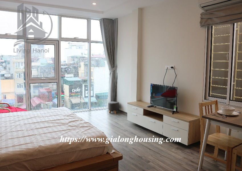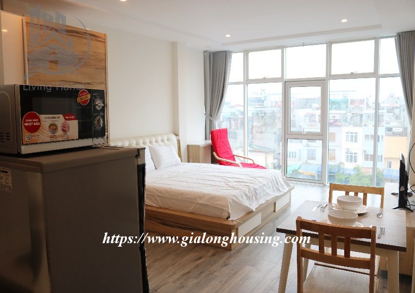 This brand new serviced apartment is located in Hoang Hoa Tham street, not far from HCMCC building, West lake and Van Cao street, Lotte tower. The total area is 40 sq m, including all rooms in one. The rent includes: cable TV, wireless internet, tap water and cleaning services 02 times/week