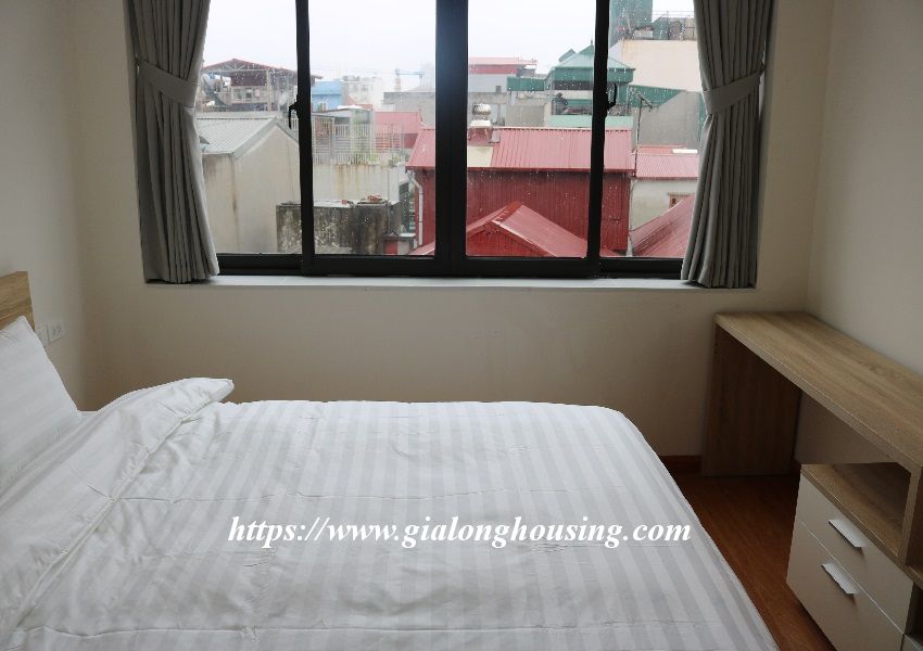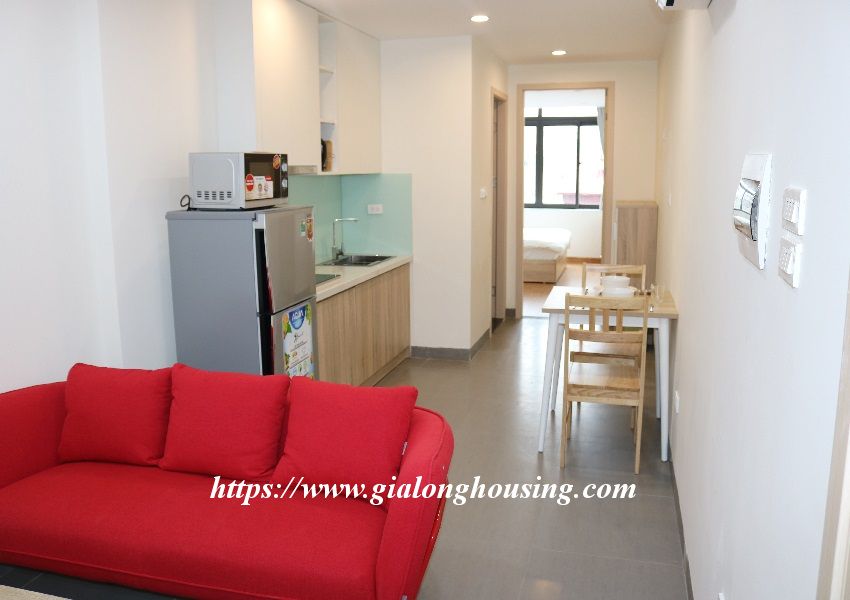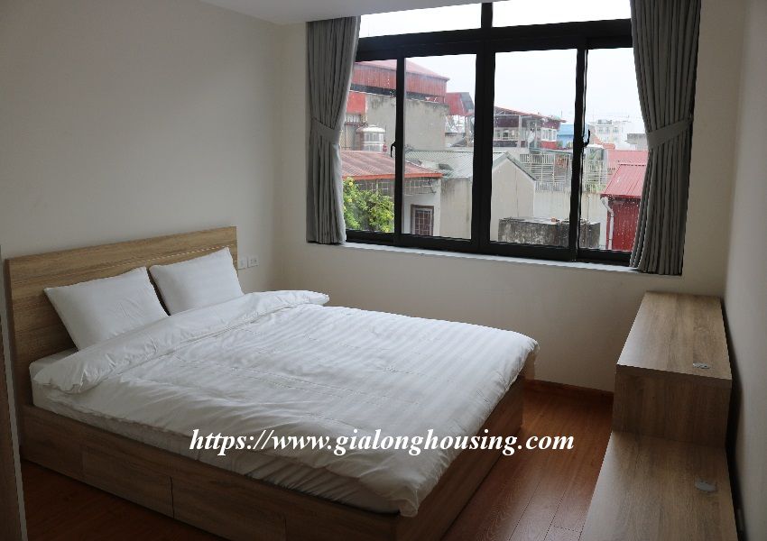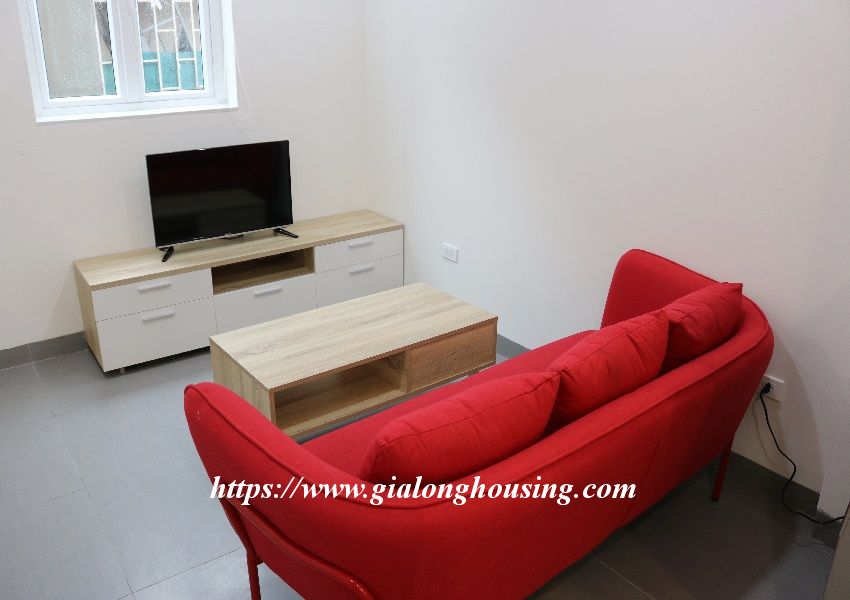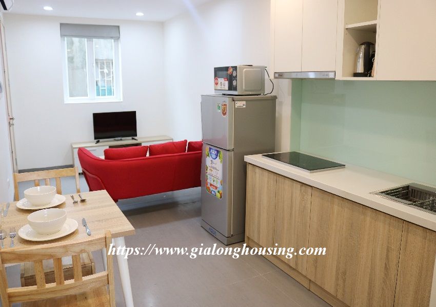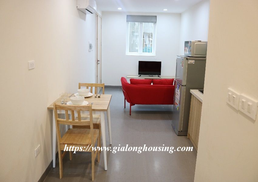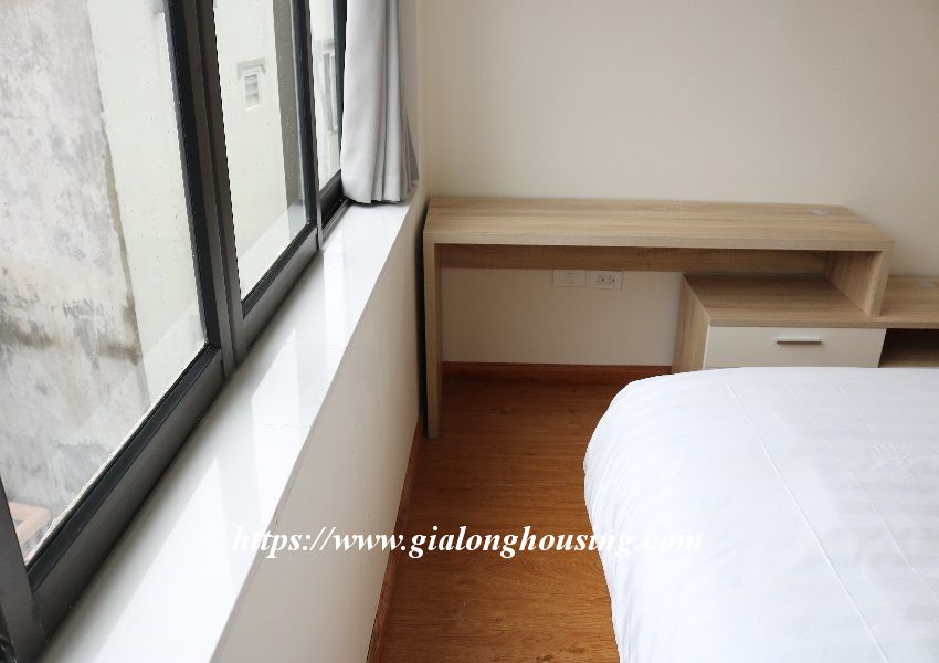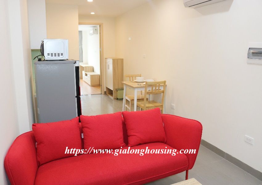 This brand new serviced apartment is located in Hoang Hoa Tham street, not far from HCMCC building, West lake and Van Cao street, Lotte tower. The total area is 50 sq m, including one bedroom and 01 bathroom. The bright living room is next to the kitchen. The rent includes: cable TV, wireless internet, tap water and cleaning services 02 times/week