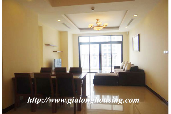 An apartment is located in R4 building, Royal City Hanoi complex is available for rent. This apartment has 131.2 sqm size, the landlord offered good quality furniture. There are: a bright living room, dining space, standard kitchen in modern style, 3 bright bedrooms, 2 bathrooms. It is decorated in nice and Western style, ideal home for family/friends.
