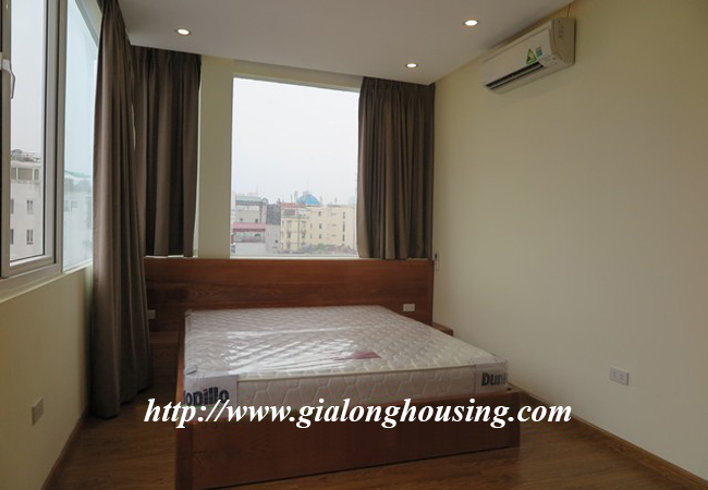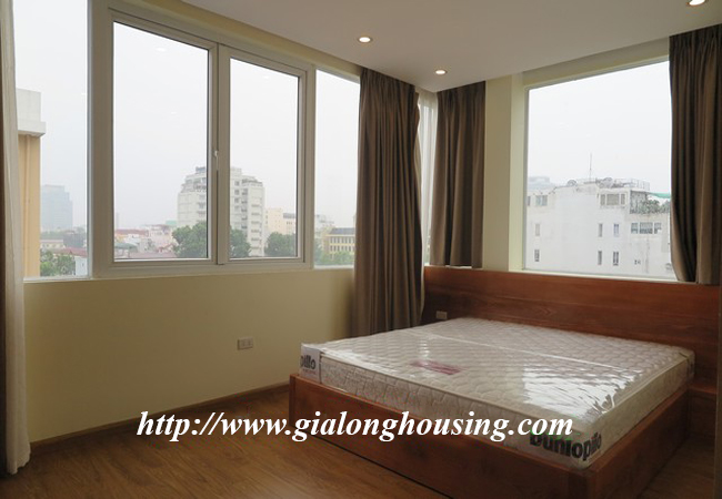 The brand new building is located in Truong Han Sieu street, near Thien Quang lake, Ba Trieu main road, Ham Long church, Nguyen Du street. The building offers some services that are included in the rent: high speed internet, cable TV, elevator, security, tap water, cleaning service. The total area is 100 sq m with 02 bedrooms and 02 bathrooms, fully furnished. The tenants can move in immediately and stay in both long and short term.