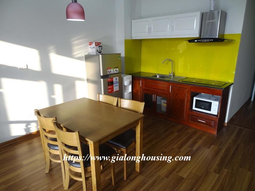 This brand new one bedroom apartment is located in Van Cao area, between West lake and Lotte Tower. The apartment is not far from Quan Ngua stadium and Japanese Embassy. The total area is 80 sq m. The rent includes : cable TV, wireless internet, tap water and cleaning service 02 times/week.