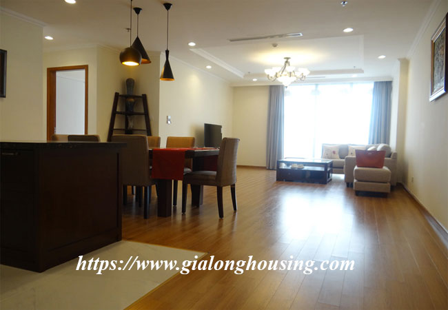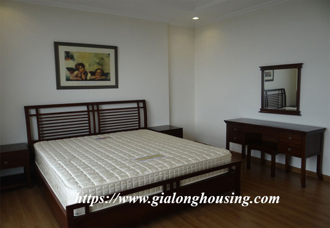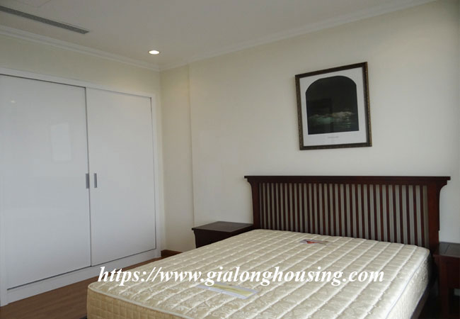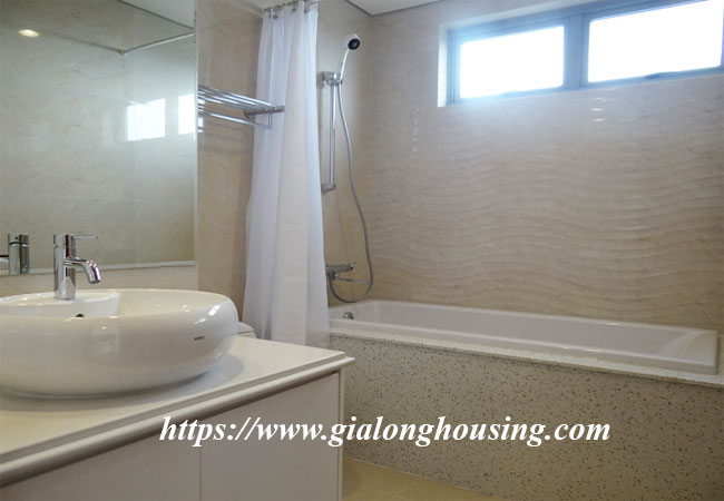 The total area if this brand new apartment is 137,5 sq m, included 03 bedrooms and 02 bathrooms. The whole apartment is bright and nice with balcony and large glass windows. All furniture and equipment are new and modern, suitable for long term contract. The building has full of high quality services: indoor and outdoor swimming pool, shopping center, security 24/24.