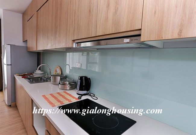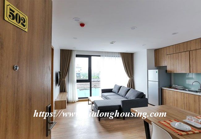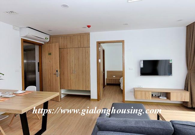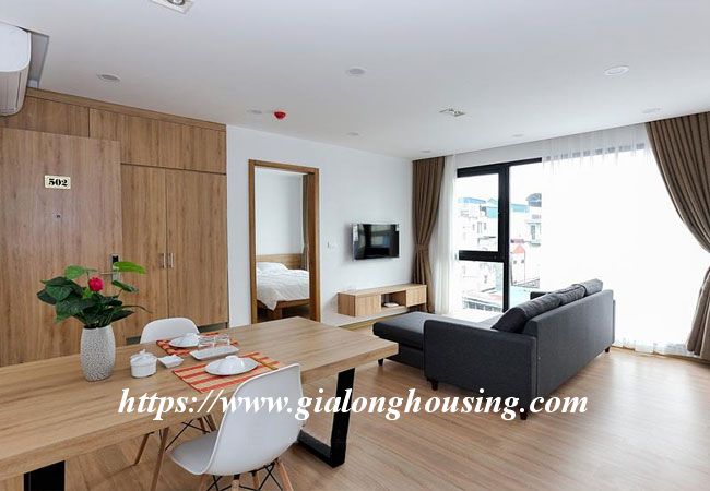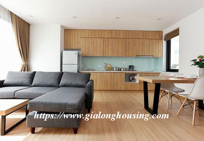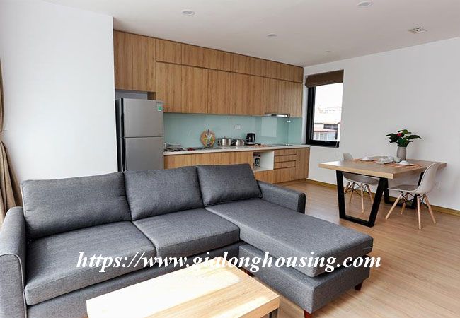 This brand new apartment is located in Hoang Quoc Viet, not far from Trang An Complex building. The apartment is designed in Occident style with all modern furniture and equipment. The total area is 50 sq m, including 01 bedroom and 01 bathroom. The living room and the kitchen luxuriates in the bright sunshine and fresh air. The rent includes : cable TV, wireless internet, tap water and cleaning service.