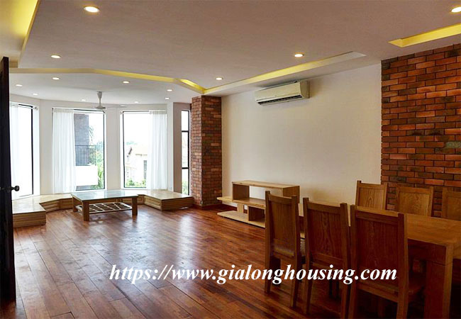 This brand new apartment is located in a quiet lane where you can walk to the West lake, shopping center and restaurants. The total area is 100 sq m, including 02 bedrooms and 02 bathrooms. The whole apartment is bright and nice due to big windows and nice balcony. The rent is included: cable TV, wireless internet, tap water.