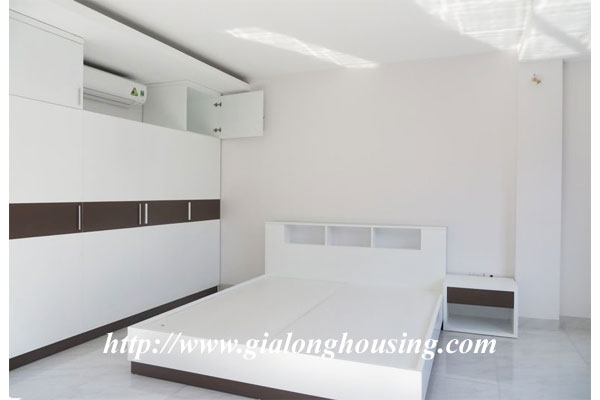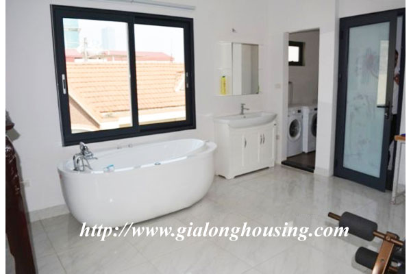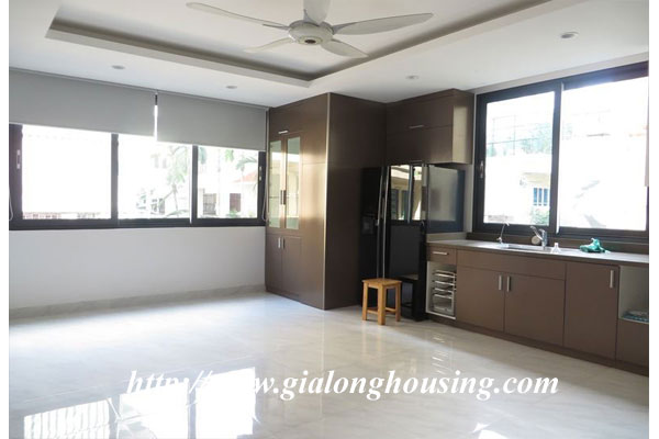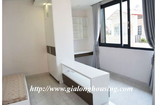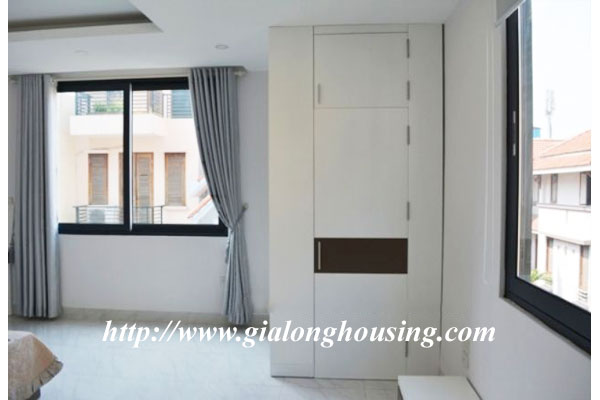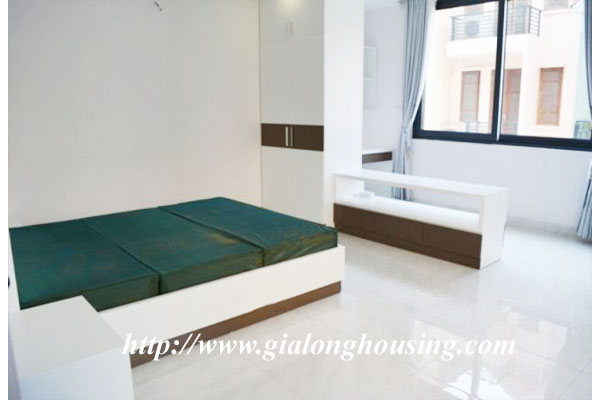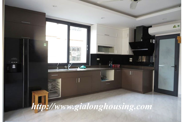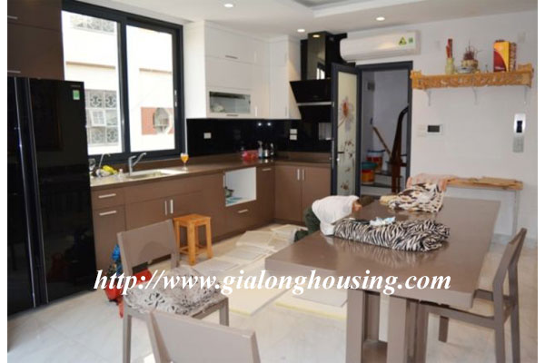 This is a very new and nice house in a quiet alley of Giang Vo street. The total ground area is 100 sq m with a beautiful view from large glass windows. The construction area is 80 sq m x 4 floors. It has 03 bedrooms and 04 bathrooms. The house is provided full furniture so the tenants can stay in long term. There is a elevator inside the house. The location is very good, not far the main road, car access.