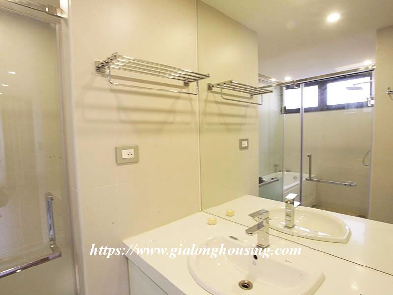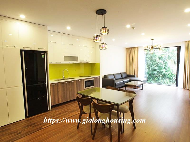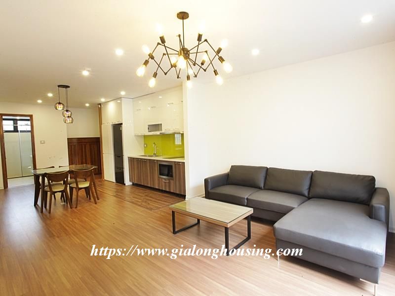 Brand new serviced apartment is located at Tay Ho street, not far from Fraser Suites building, Xuan Dieu street and West lake. The total area is 105 sq m, including 02 bedrooms and 02 bathrooms. The modern kitchen is combined to the living room. The rent includes : cable TV, wireless internet, cleaning service.
