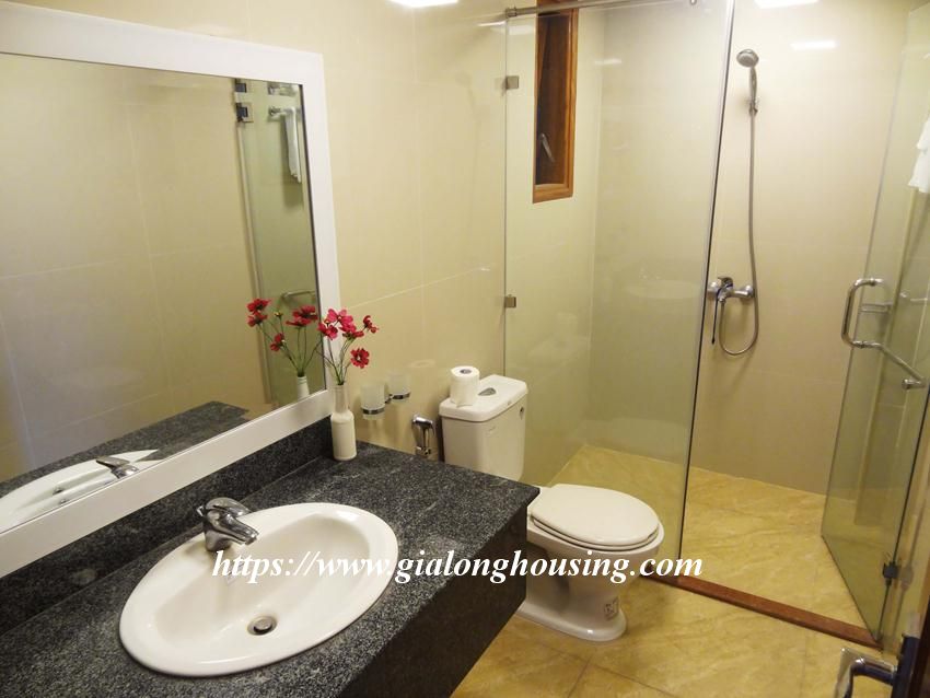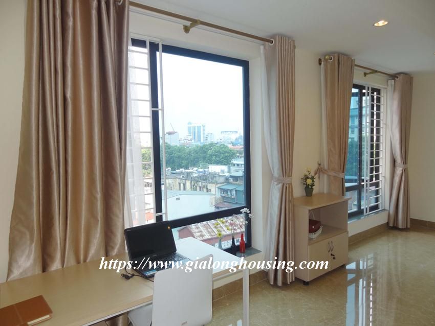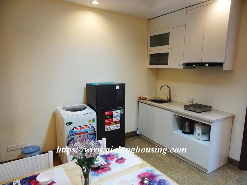 This brand new apartment is located in Giang Vo, not far from Ngoc Khanh. The total area of the apartment is 55 sq m, including 01 bedroom and 01 bathroom. The whole apartment is full of sunlight and fresh air with nice view from big window.