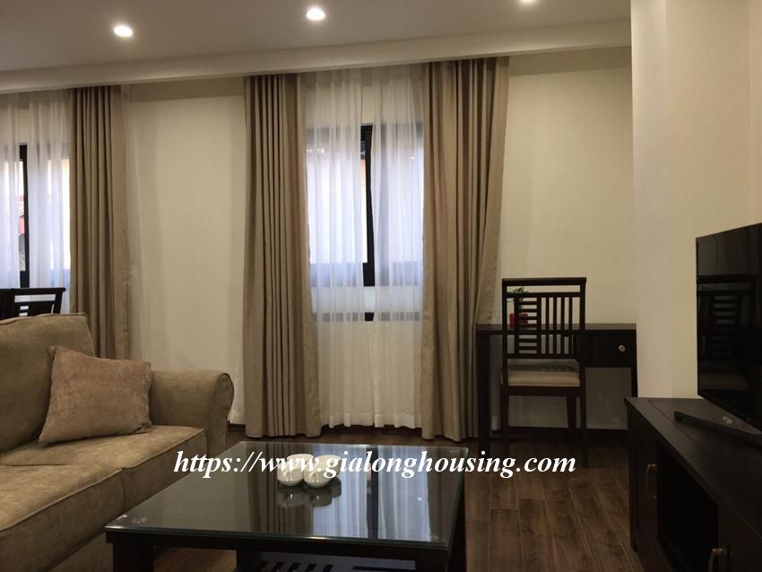 This brand new serviced building apartment has 14 apartments which are different types suits your housing request: studio, 01 bedroom apartment, 02 bedrooms apartment. The from is from $550 to $1,200. The price includes: cable TV, wireless internet, tap water, cleaning and laundry service, security and maintenance.