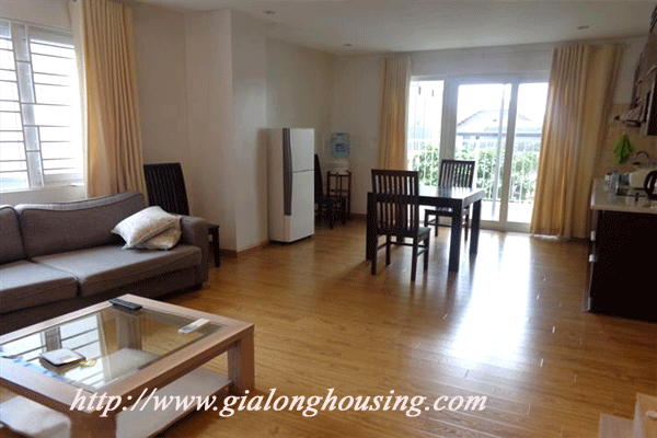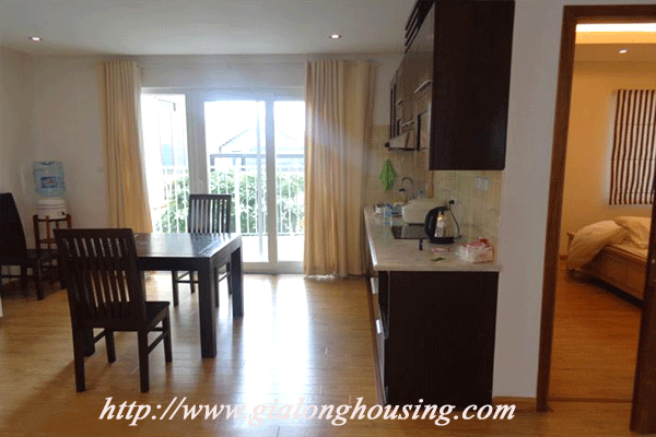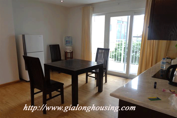A nice serviced apartment for rent in LE DUAN str Dong Da District, the size is 65sqm with a Living room combined with Dining table,01 Bedroom, 01 Bathroom.is has wooden floor very light and quiet.
