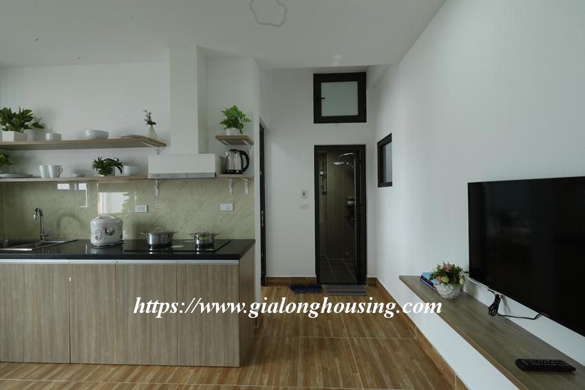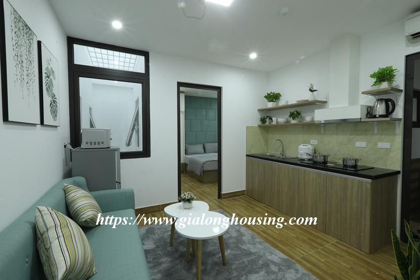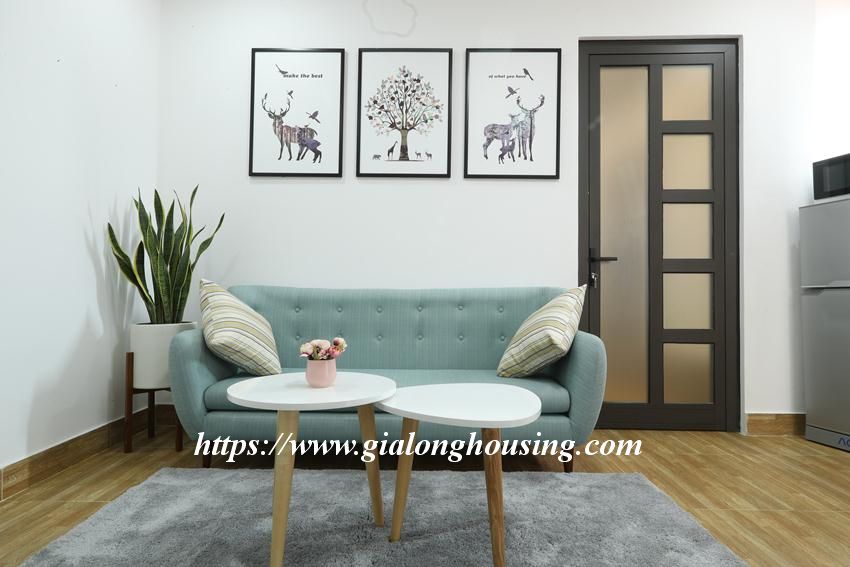 This brand new service apartment is located in Quan Hoa street, Cau Giay district. The total area is 45 sq m,the rent includes full of services: cable TV, wireless internet, cleaning and laundry service.