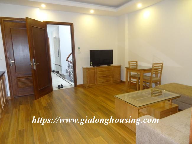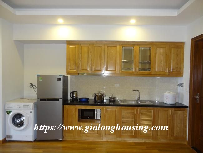This brand new serviced apartment is located in Tran Duy Hung street, not far from Grand Plaza hotel. This apartment is ready for the tenants to move in and stay in both long and short term. The total area is 50 sq m, including 01 bedroom and 01 bathroom. All the furniture and equipment are new and modern.