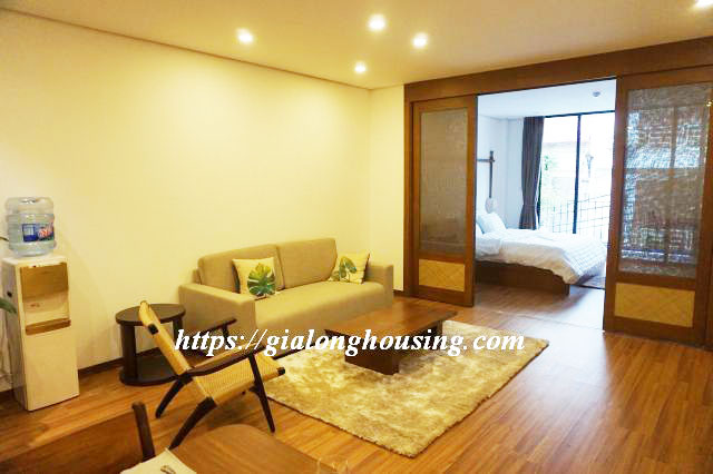 This brand new serviced apartment is located in Truong Han Sieu, Hoan Kiem district, Hanoi. The total area is 55 sq m. The landlord offers you full of services: housekeeping service, high speed internet, tap water, laundry, cable TV, security 24/7. The apartment is ready for you to move in right today.