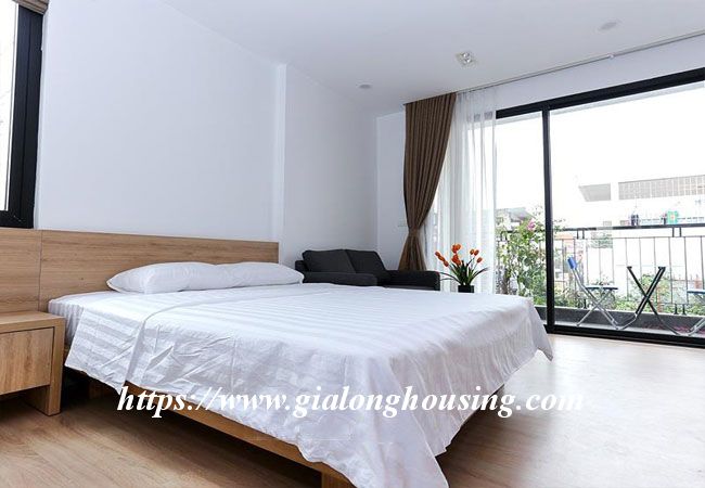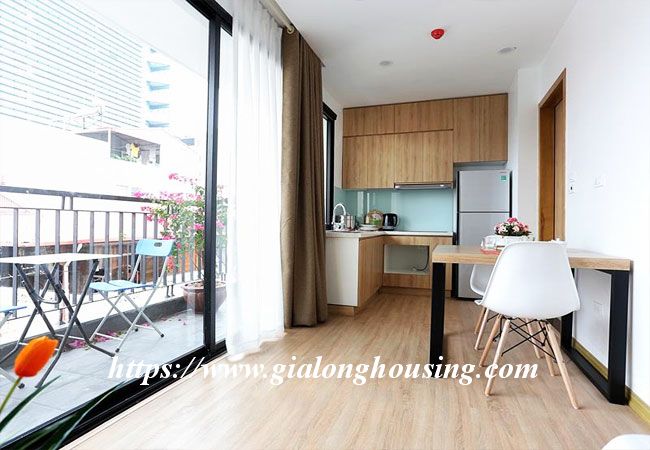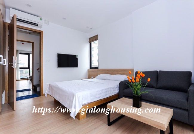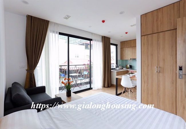 This brand new studio apartment is located in high floor of the newly opened building. The total area is 40 sq m, including all room in one. The whole apartment is full of sunlight and fresh air with open view to Trang An complex. The rent includes cable TV, wireless internet, tap water and cleaning service.