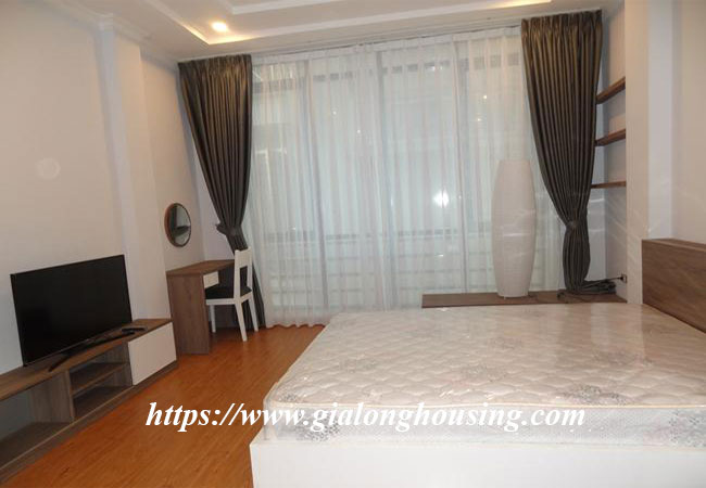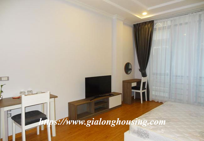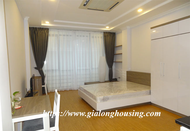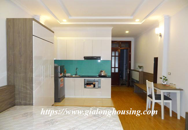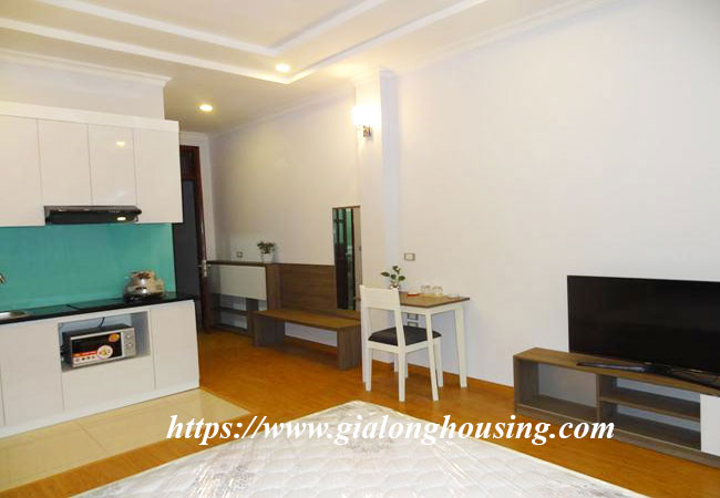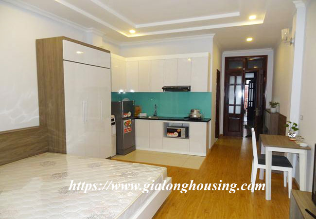 This is a brand new serviced apartment located in Nguyen Thi Dinh street, between Tran Duy Hung and Le Van Luong street. The whole building is nice and modern. It has good services: security, cable TV, wireless internet, tap water. The total area of the apartment is 50 sq m with all rooms in one.