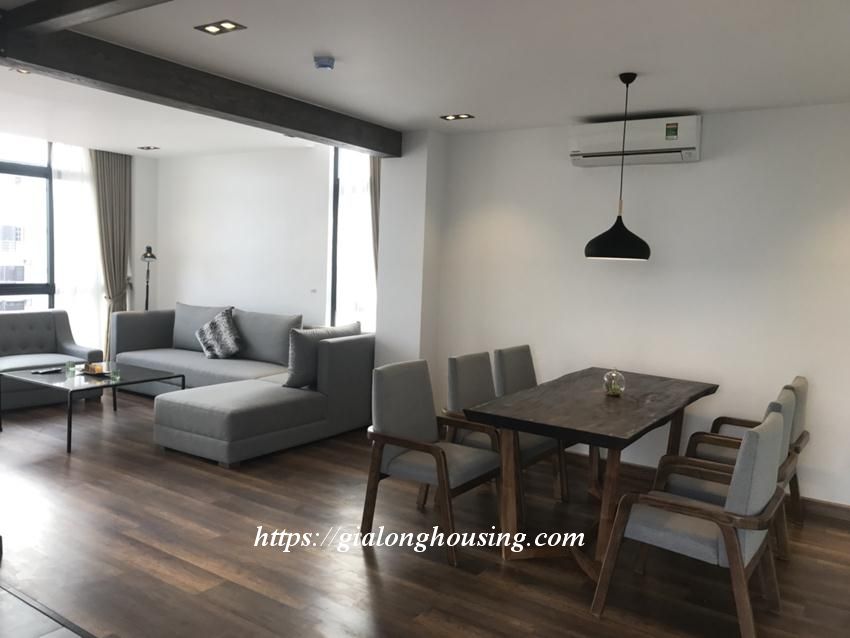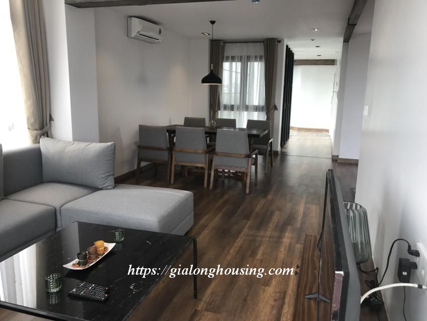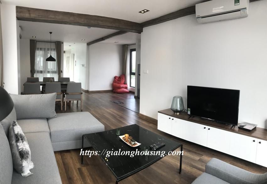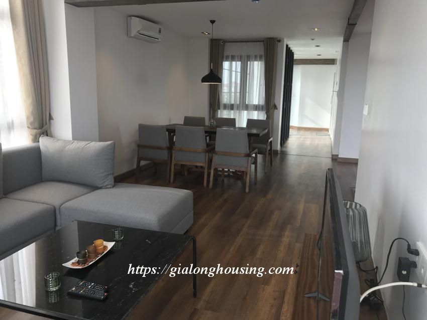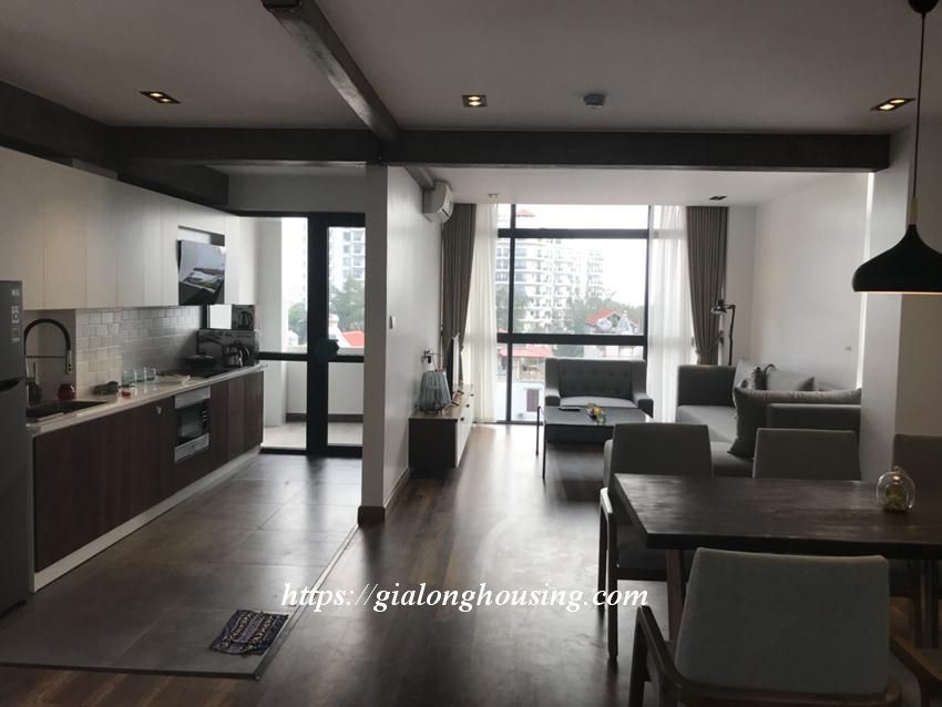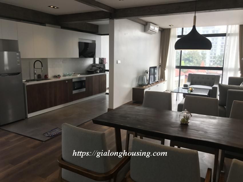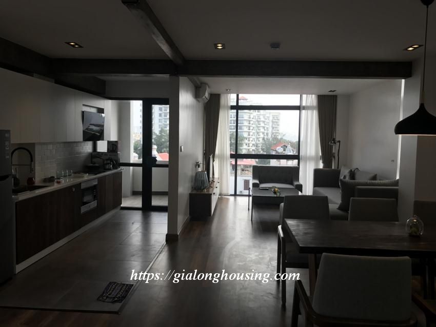 This brand new apartment is located in Dang Thai Mai street, Tay Ho district, Hanoi. The total area is up to 110 sq m, 02 bedrooms and 02 bathrooms. The whole apartment is full of brightness and sunlight from the windows and cool wind from the lake. The rent includes : cable TV, wireless internet, tap water and cleaning service.