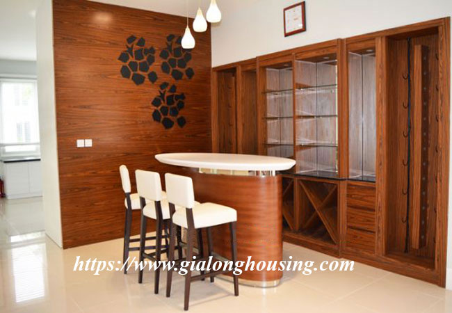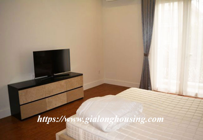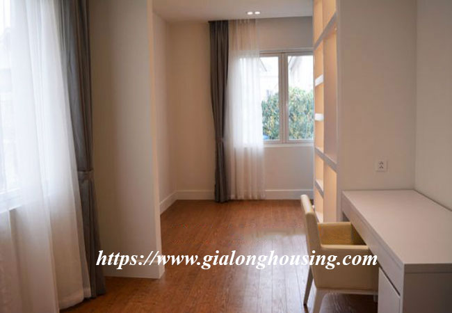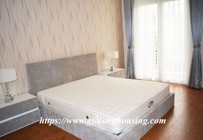 This is a very new villa located at Long Bien Riverside urban area. The land area is 200 sq m, next to the river. The living area is up to 460 sq m with 03 bedrooms and 03 bathrooms. The villa is fully furnished and the tenants can move in immediately. The surrounding area is safe and peaceful, not very far from Hanoi city center.
