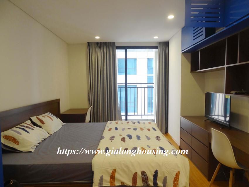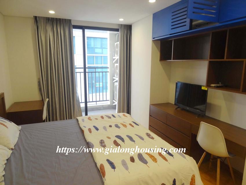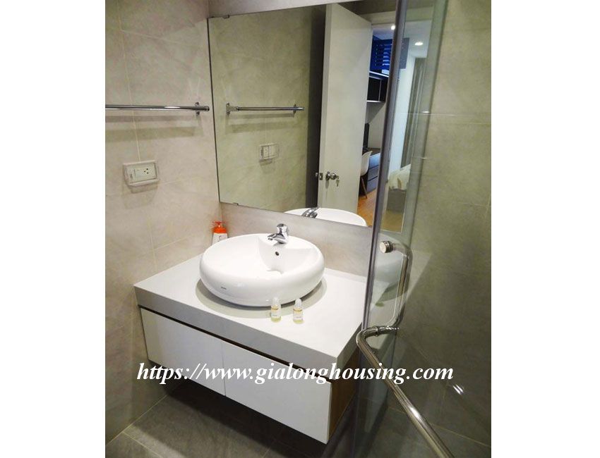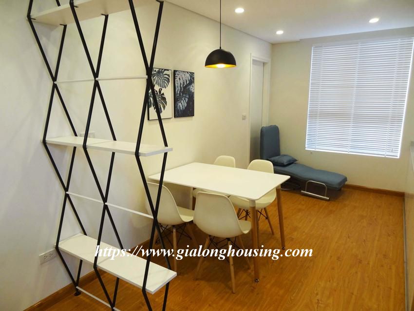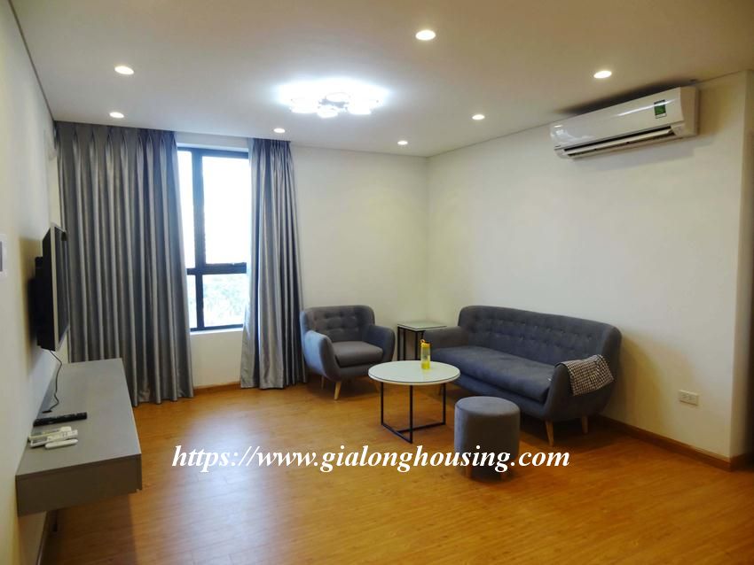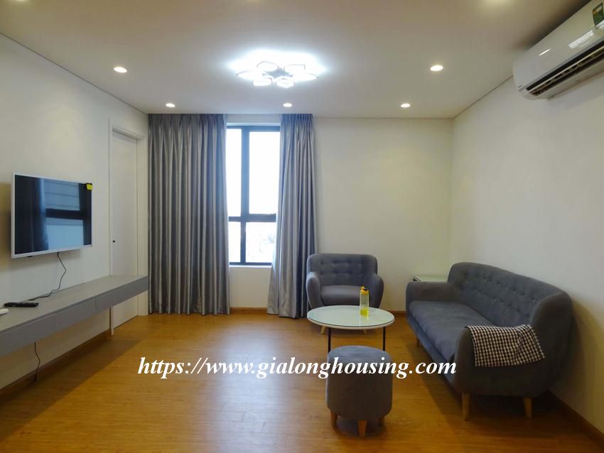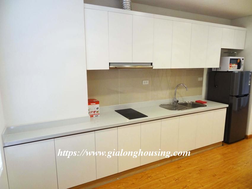 This 2 bedroom apartment is located in middle floor of HongKong Tower, 243A De La Thanh, Dong Da district. The total area is 74,5 sq m, 02 bedrooms, 01 toilet and 01 bathroom. The whole apartment is bright and nice with the modern furniture. The building has pool, gym, bank and security 24/24