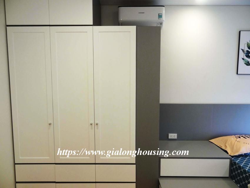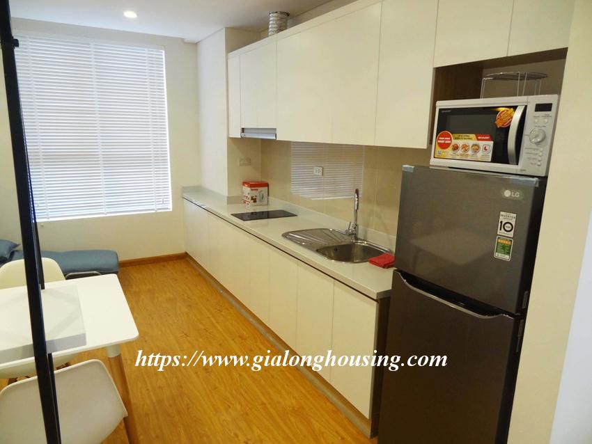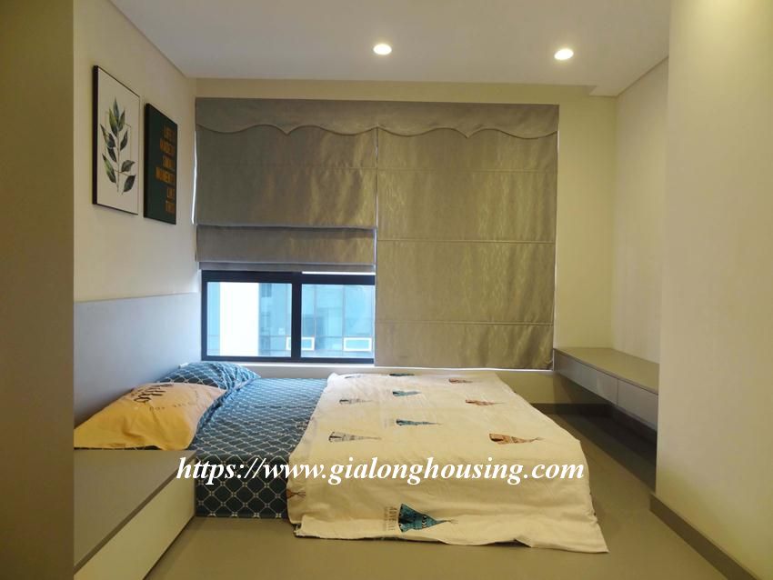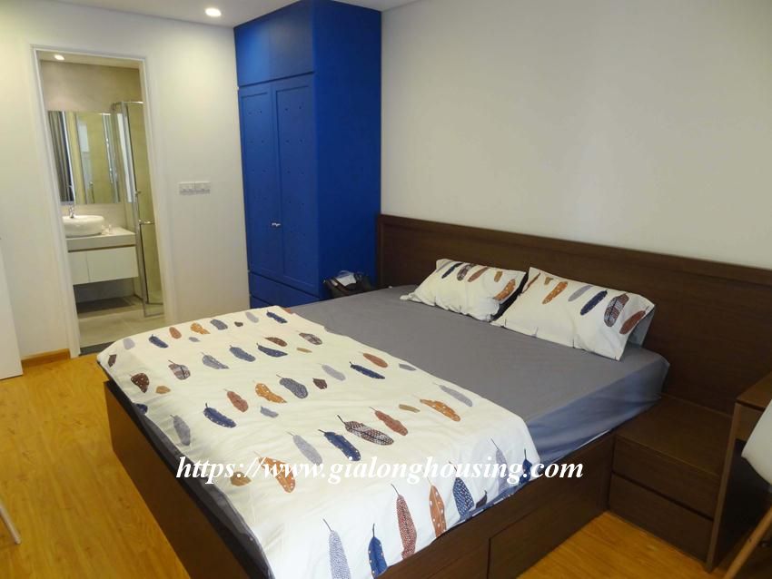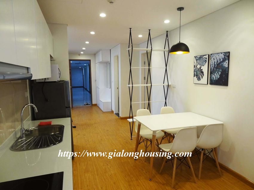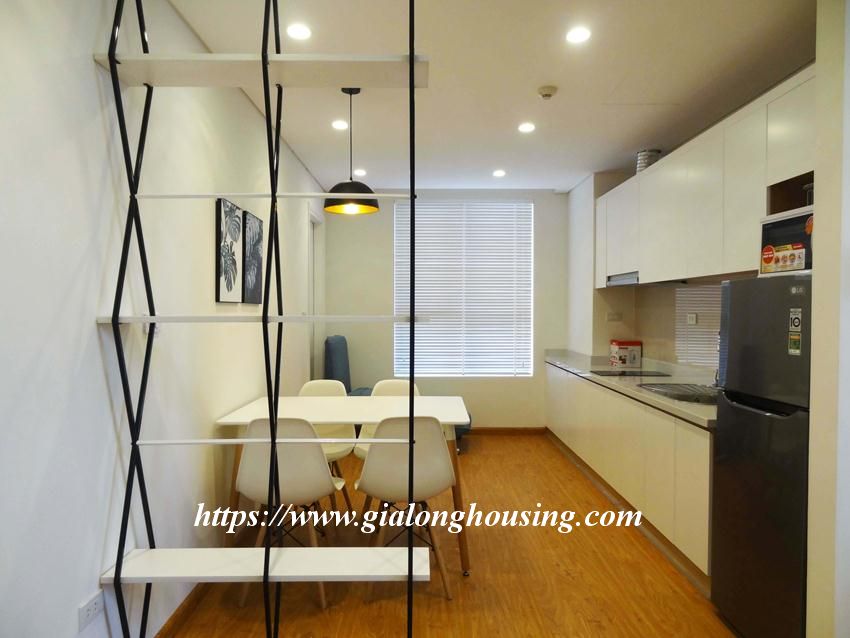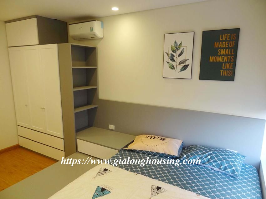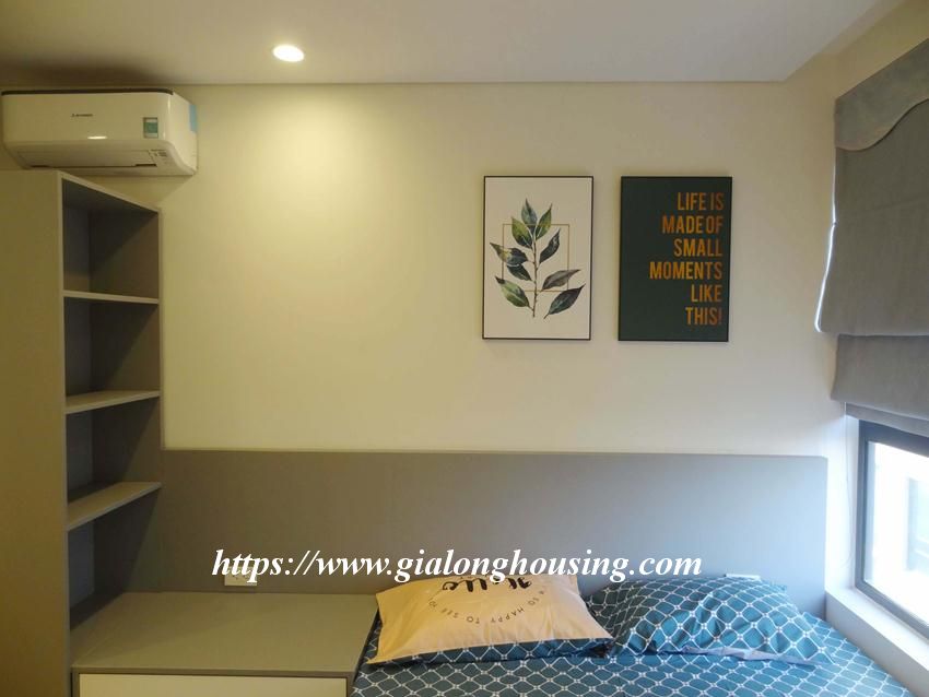 This 2 bedroom apartment is located in middle floor of HongKong Tower, 243A De La Thanh, Dong Da district. The total area is 74,5 sq m, 02 bedrooms, 01 toilet and 01 bathroom. The whole apartment is bright and nice with the modern furniture. The building has pool, gym, bank and security 24/24