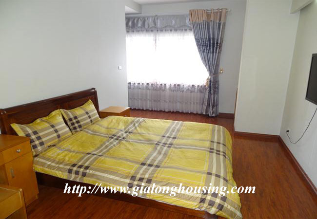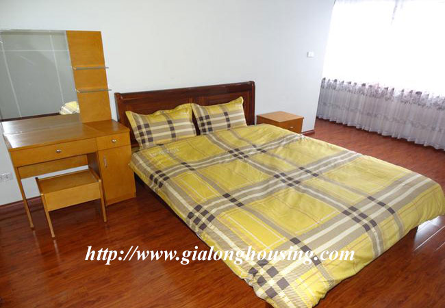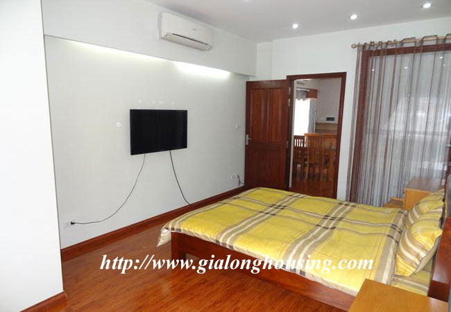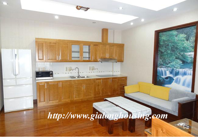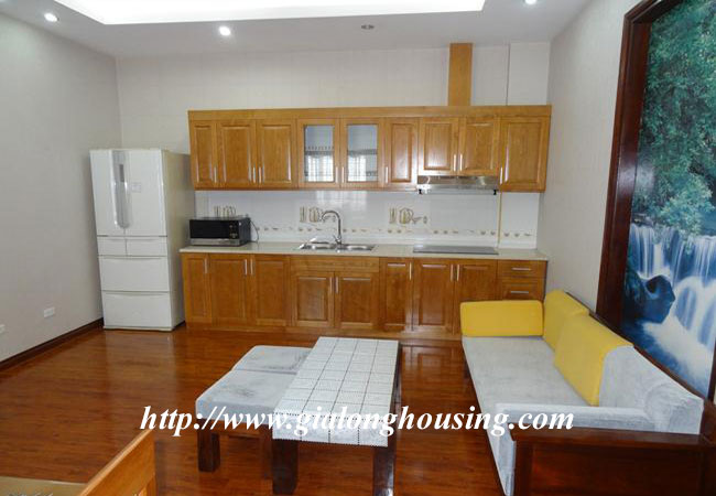 This apartment is located in very nice building located in Van Bao street, walking distance to Japanese Embassy, Lotte tower, restaurants, shopping centers. The total area of this apartment is 60 sq m, with full of furniture and equipment so that the tenants can move in immediately. There are 01 bedroom, 01 living room combined the kitchen, 01 bathroom and 01 toilet for guest.