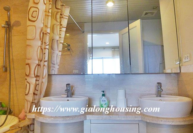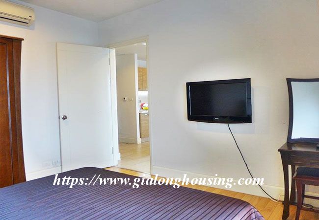 This bright and nice apartment is located in high floor of Golden Westlake building. The building is near West lake, from balcony of the apartment, you can see the corner of West lake. The total area is 85 sq m, including 02 bedrooms and 02 bathrooms, suitable for the tenants to stay in long term. The building has swimming pool, security, reception and gym.