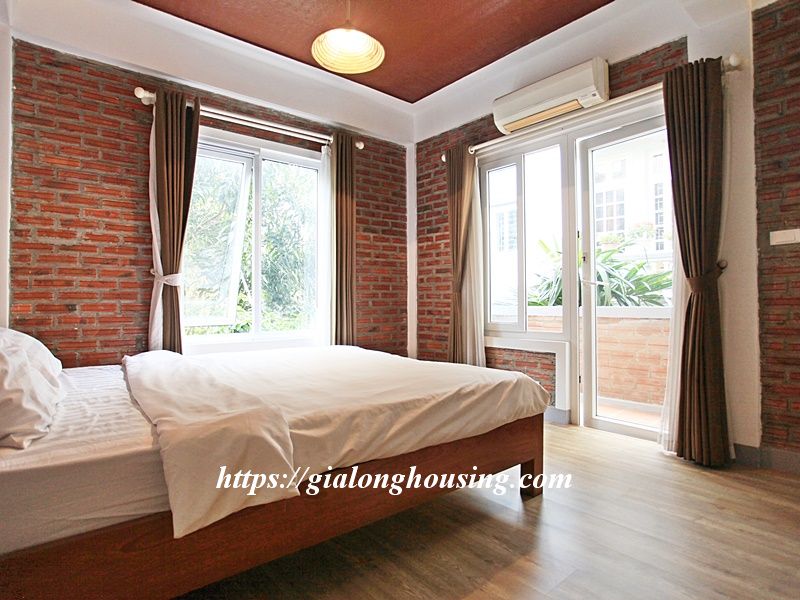 This nice and bright serviced apartment is located in the quiet alley of Tay Ho road. The total area is 50 sq m, 01 bedroom and 01 bathroom. The apartment has a small balcony where you can enjoy the sunlight and fresh air with green view. The rent includes cable TV, wireless internet and tap water.