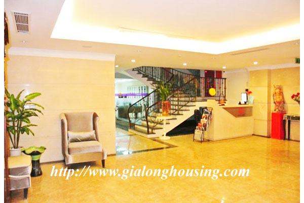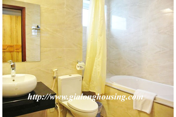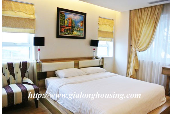 This is a very charming and luxurious serviced apartment in Ba Dinh district. The total area of this apartment is 60 sq m with 01 bedroom and 01 bathroom. It is very near Lotte Tower, Daewoo hotel, Japanese Embassy, Australian Embassy, restaurants, cafes. The building offers you full high quality services: security, receptionist, motorbike parking, high speed internet, cable TV, water, cleaning service