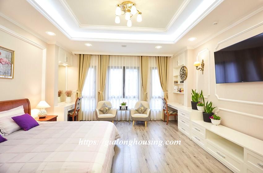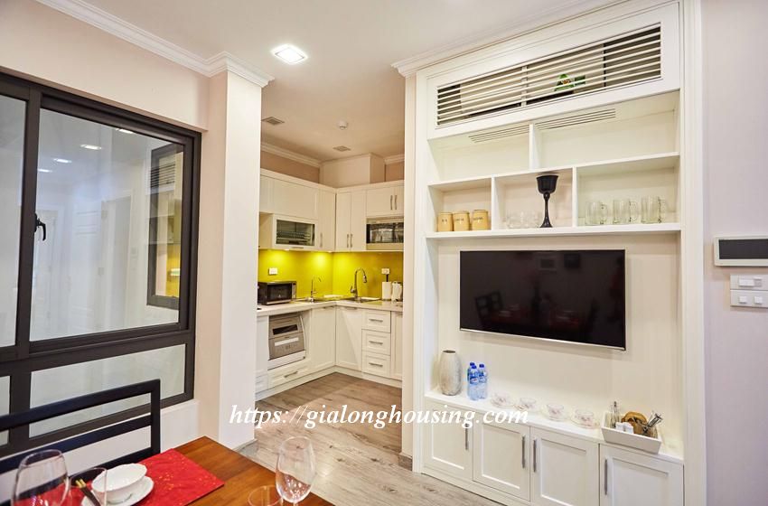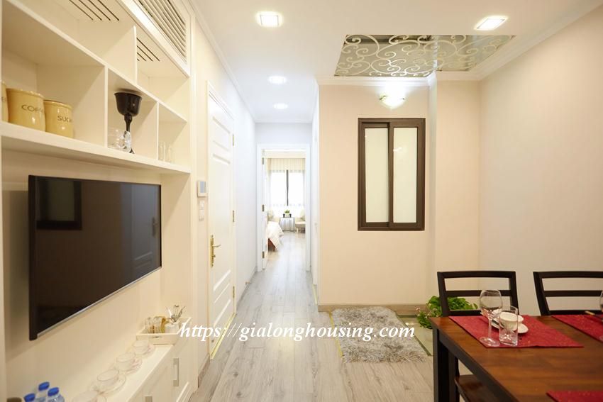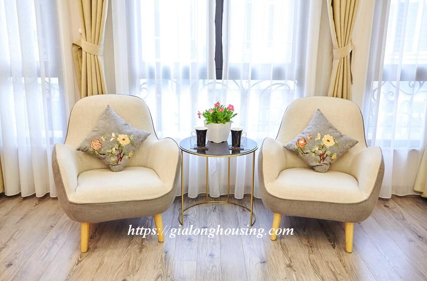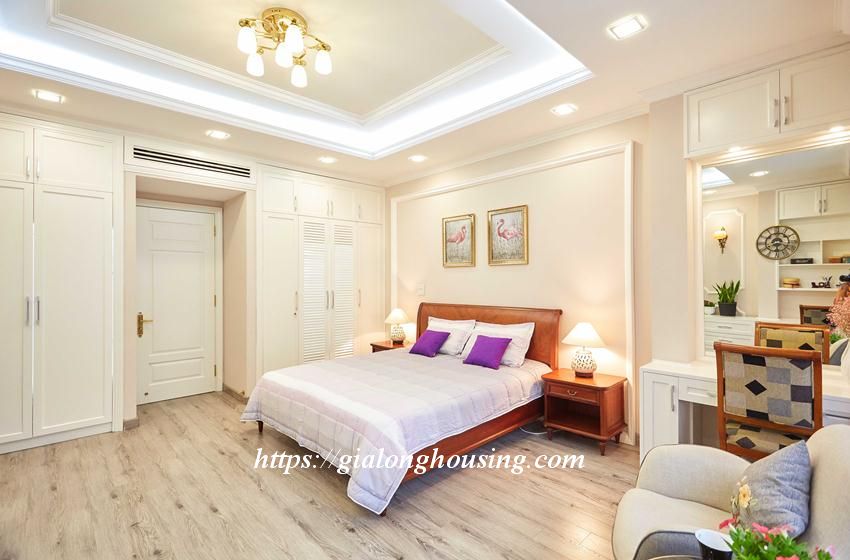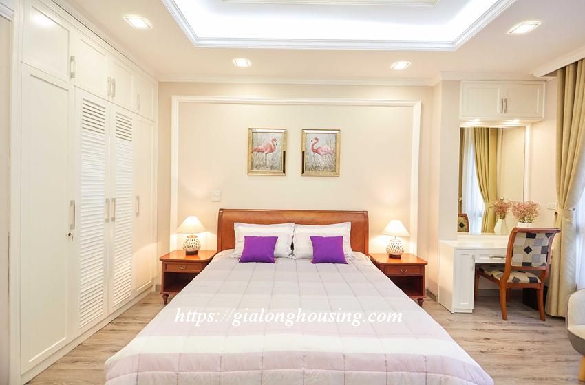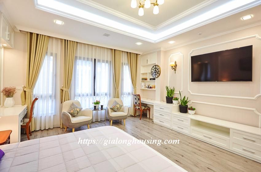 This bright and shining apartment is located in a quiet and peaceful alley of Van Cao street, walking distance to Lotte Tower, Japanese Embassy, Hanoi Academy, Australia Embassy, Daewoo hotel. The area is 45 sq m, including 01 bedroom, 01 bathroom and a cozy kitchen. The apartment is elegant by the care of the landlord and welcomes you to come and stay.