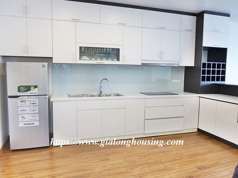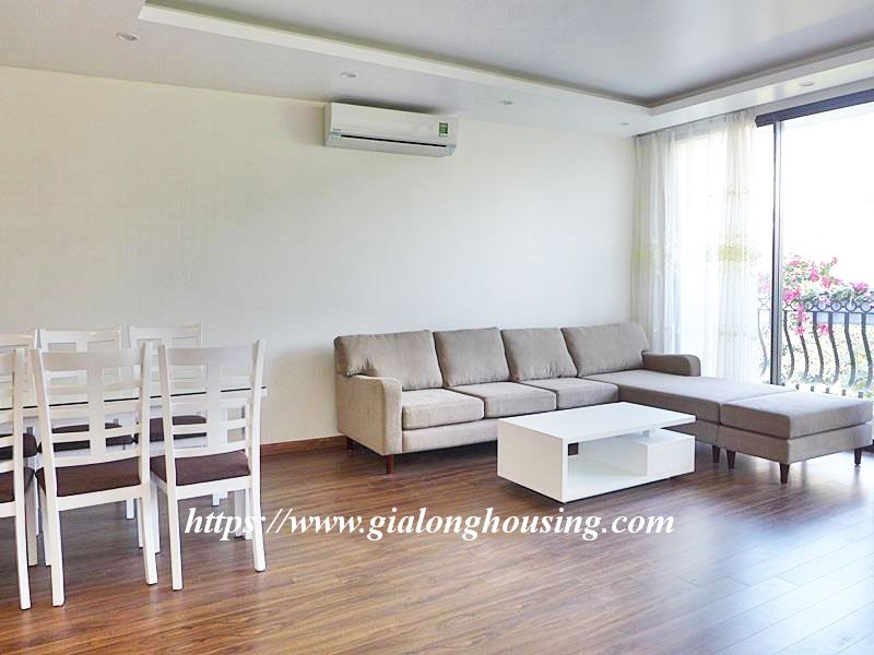 This charming apartment is located at the high floor of a serviced building in Yen Phu village. The total area is 130 sq m, including 02 bedrooms and 02 bathrooms. The modernl design makes the rooms are bright and cozy. The apartment welcomes all the tenants to move in today. Please contact us to visit it.