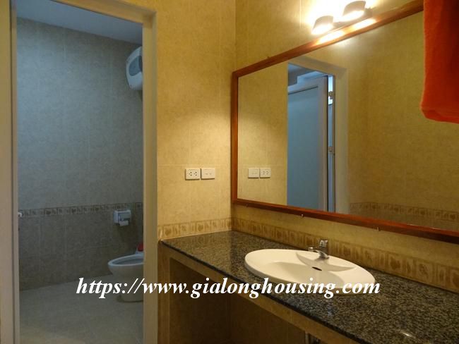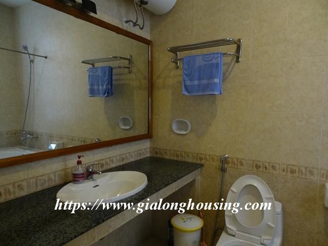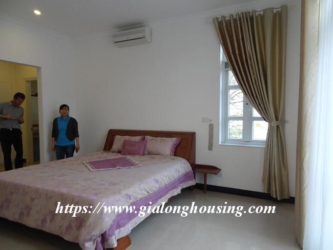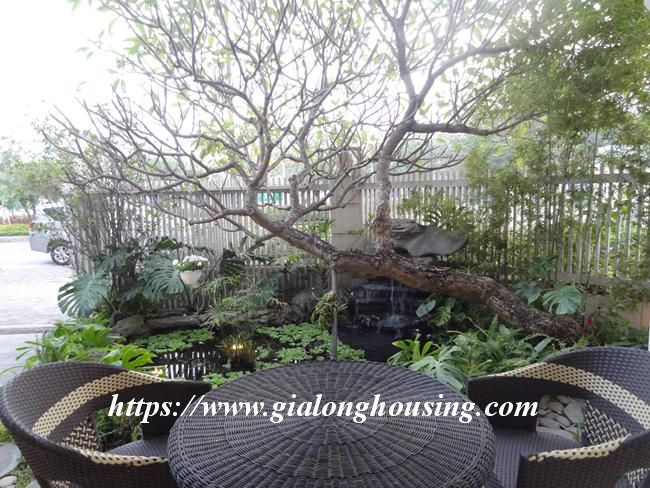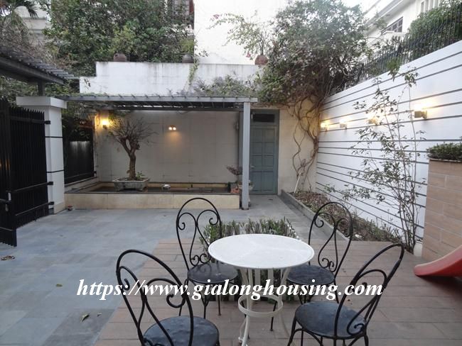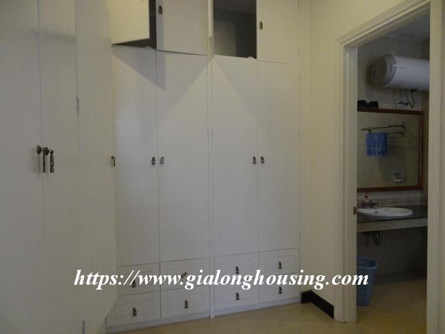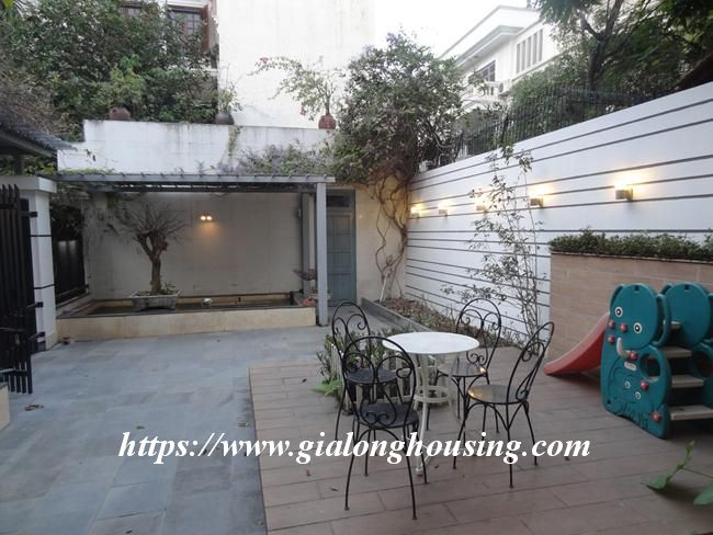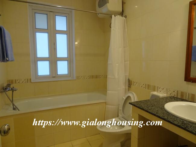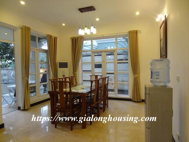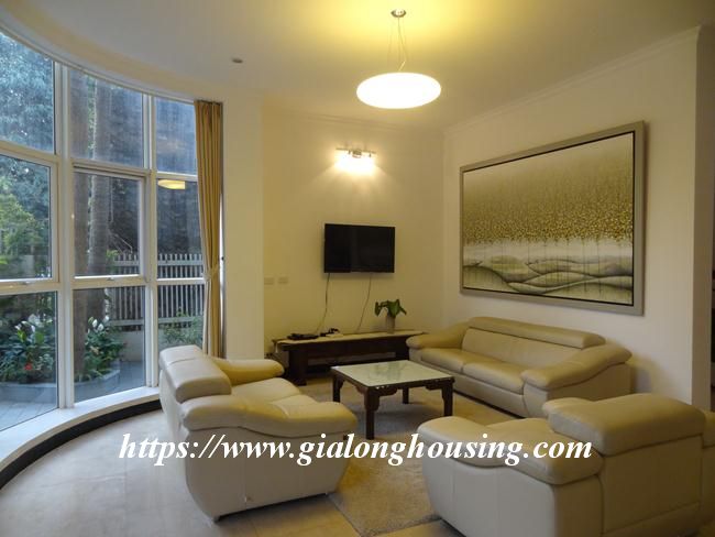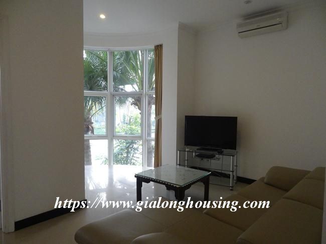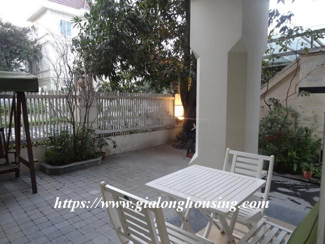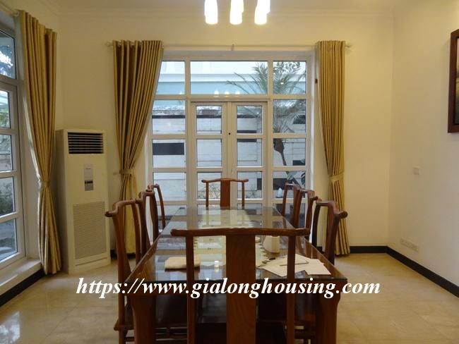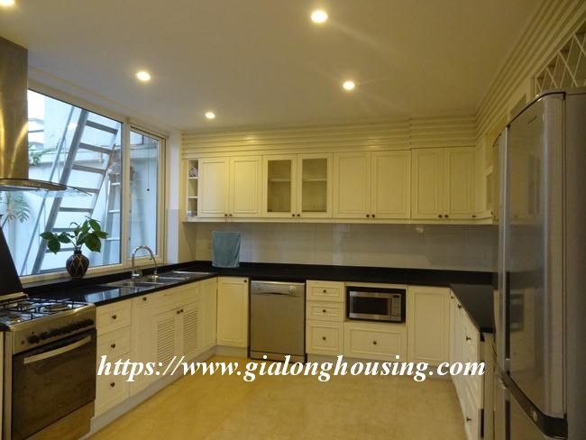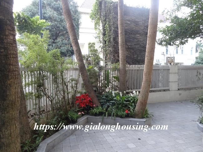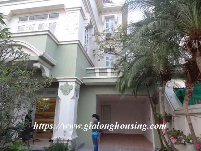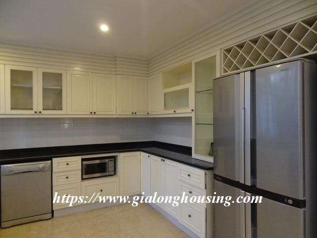 This charming villa is located at the corner, T block, Ciputra complex, Hanoi. The land of area is 360 m2, it is 3-storey villa, big outdoor space, very bright, double glass windows. The 1st floor is a good sized living room, connected to the dining room. The kitchen is open set-up with big oven, nice fridge, white cabinets. There is a bathroom and a garage on the 1st floor.