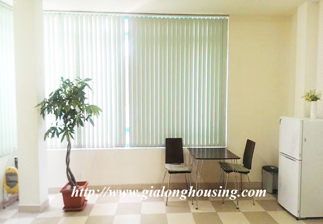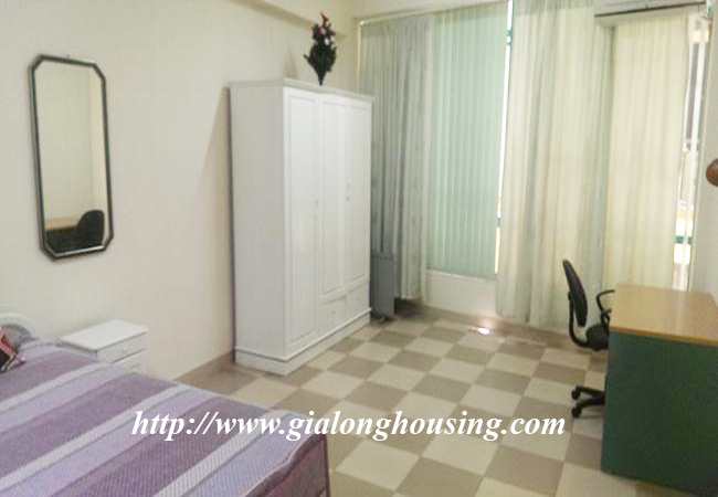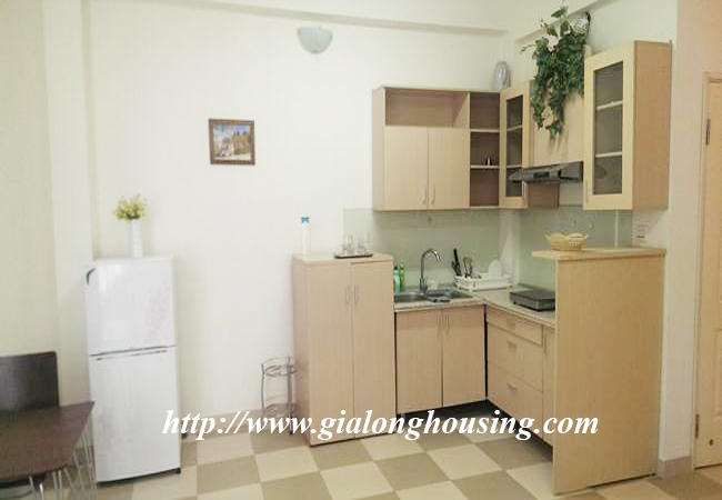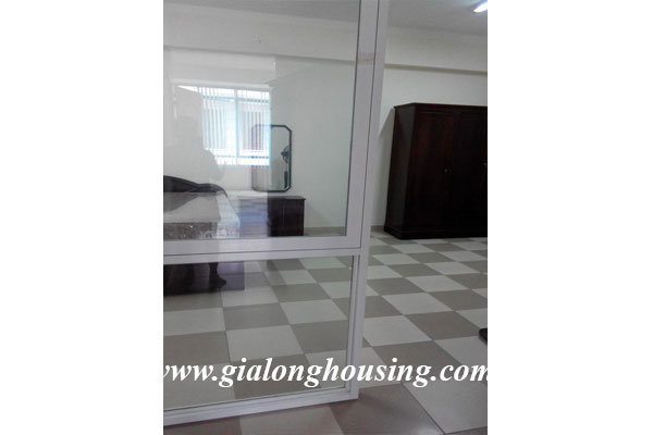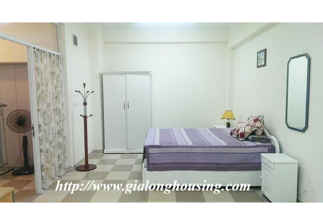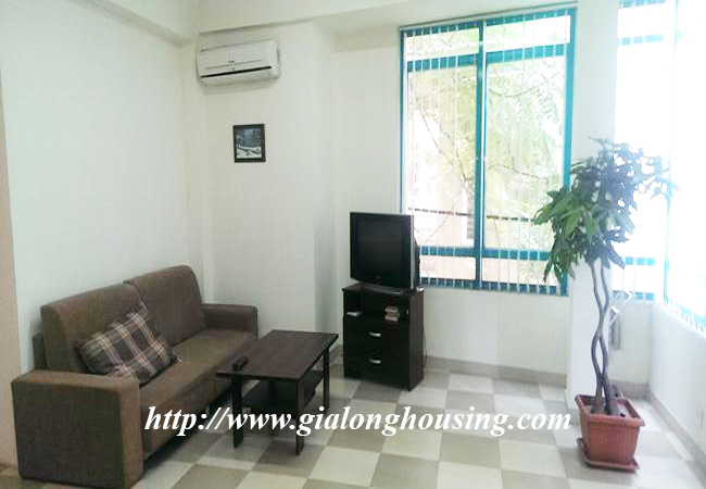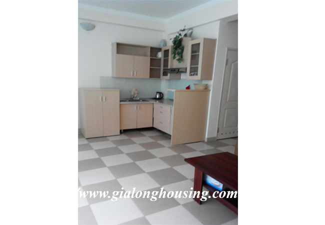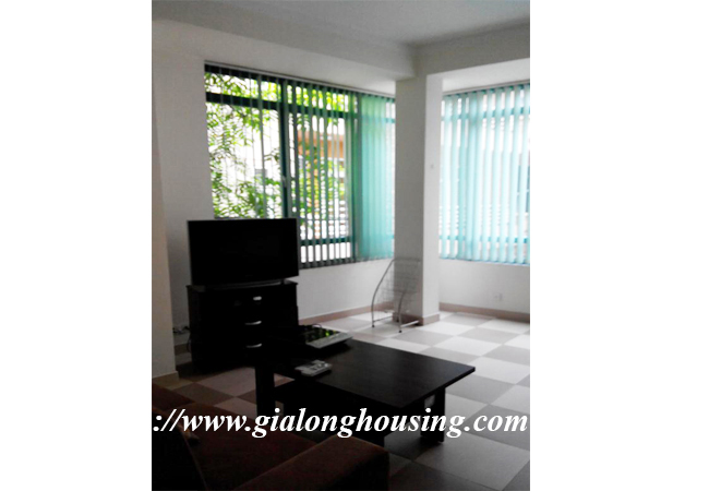 This is a serviced apartment located in quiet lane of Van Cao street where you can access by car. The rent is just 410 USD with cable TV, internet, tap water and cleaning service included. The total area is 75 sq m with 01 bedroom. The location is really good, near The Japanese Embassy, Lotte shopping center, the Australia Embassy, Daewoo hotel.