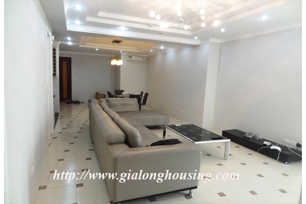 Well equipped and furnished apartment for rent in E4 building, Ciputra Hanoi, 123 sq m home, with a good nice living room, nice kitchen, 03 bedrooms and 02 bathrooms, bright, nice view. the building has gym, swimming pool, mini mart and parking.