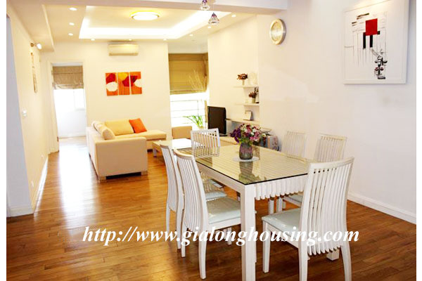 This is a nice apartment in E1 building, Ciputra urban area. The total area is 123 sq m with 03 bedrooms and 02 bathrooms. All rooms are bright and nice, with modern and comfortable furniture. The urban area is safe, international services, gym, swimming pool, security, international schools.